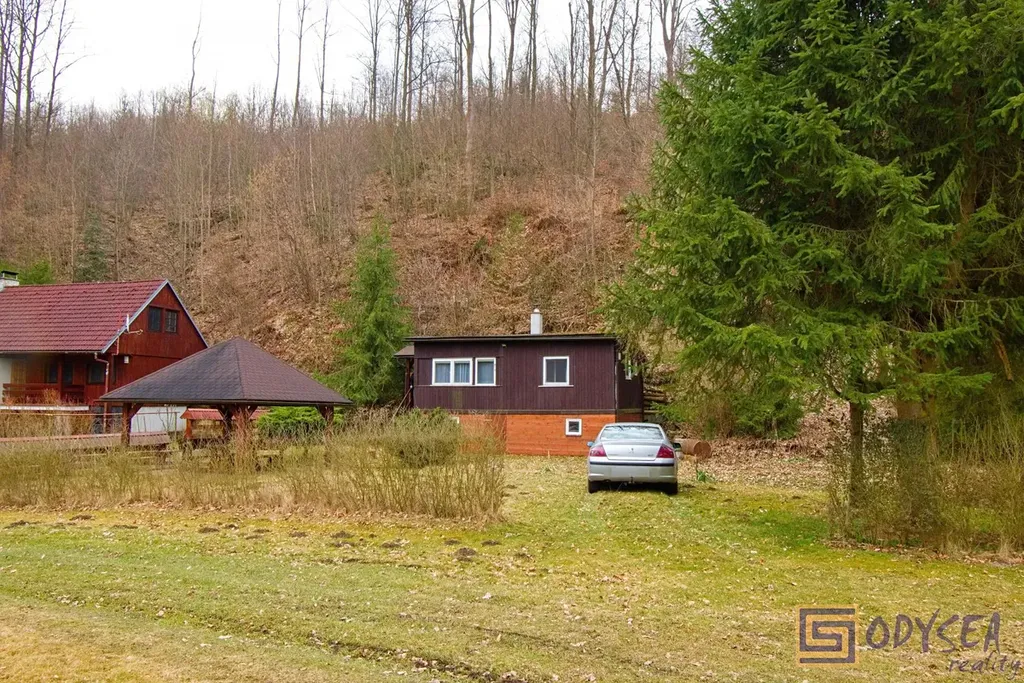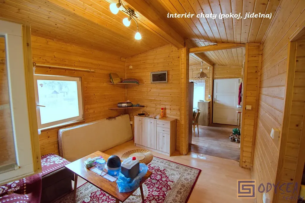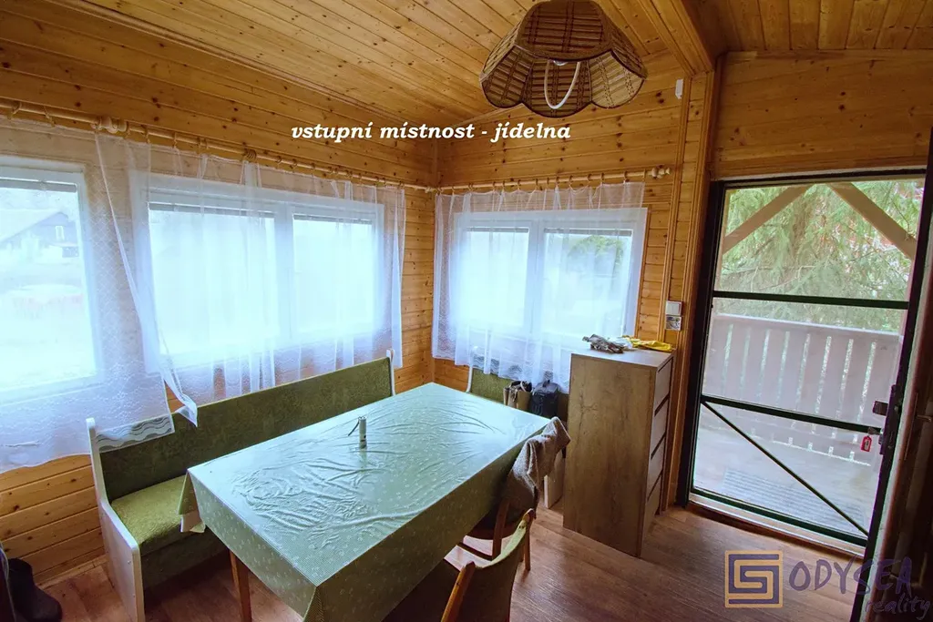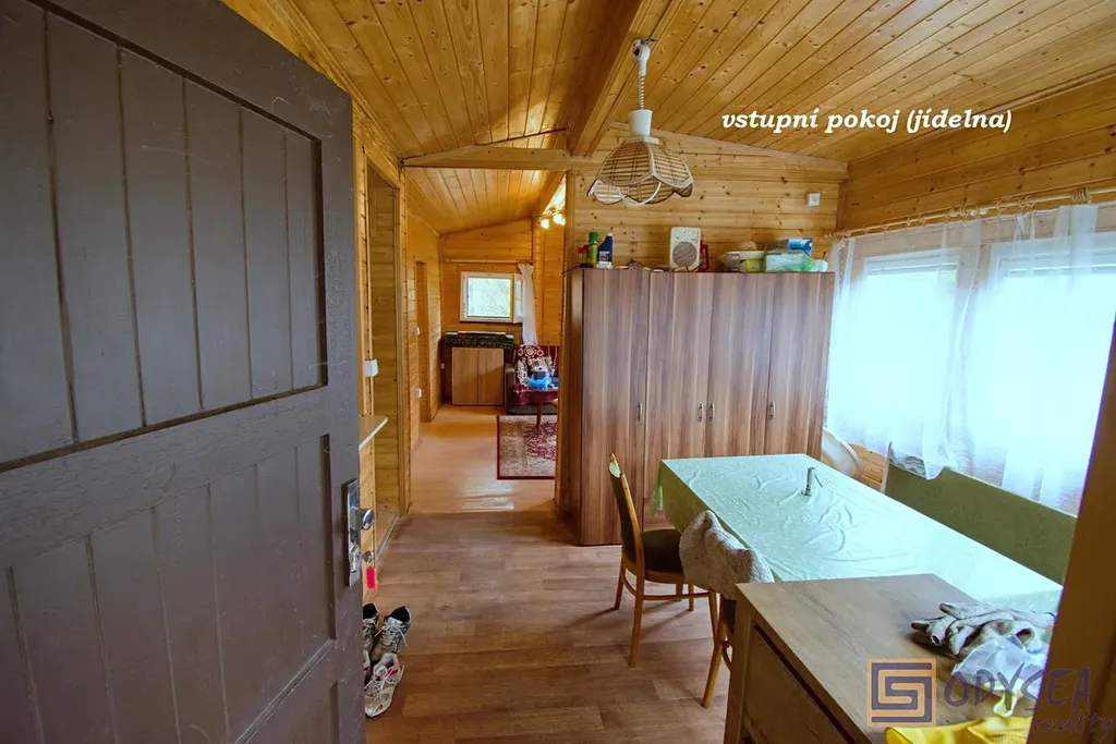 Exklusivně nabízíme prodej rekreační chaty o zastavěné ploše 44 m2 v krásné lokalitě Vítkov - Podhradí. Chata je dřevěné, zateplené konstrukce se zděnou podezdívkou. Je přízemní, prostorná - nachází se zde 3 pokoje (jídelna, obývací pokoj, ložnice), kuchyňský kout a koupelna s WC, pod celou obytnou částí jsou k dispozici úložné prostory (dřevník, skladovací prostor, technický kout s bojlerem na ohřev vody). Interiér chaty je udržovaný, dřevěné obložení bylo pravidelně lakováno, chata je elektrifikovaná (220 V) s rozvodem vody z vlastního zdroje (vrtaná studna s pitnou vodou), před cca sedmi lety byla na střeše položena nová krytina - lepenka. Pozemek je rovinatý, krom chaty se na něm nachází altán a několik jehličin, výměra zahrady je 430 m2. Součástí prodeje je i podíl 1/9 na společném pozemku (dalších 304 m2) - jedná se o travnatou plochu, která se nachází uprostřed této and #34;osady and #34;. Několik kroků od chaty je společná studánka s velmi kvalitní pitnou vodou. Celé údolíčko s nedalekou řekou působí velice romanticky (viz fotogalerie) - doporučujeme.