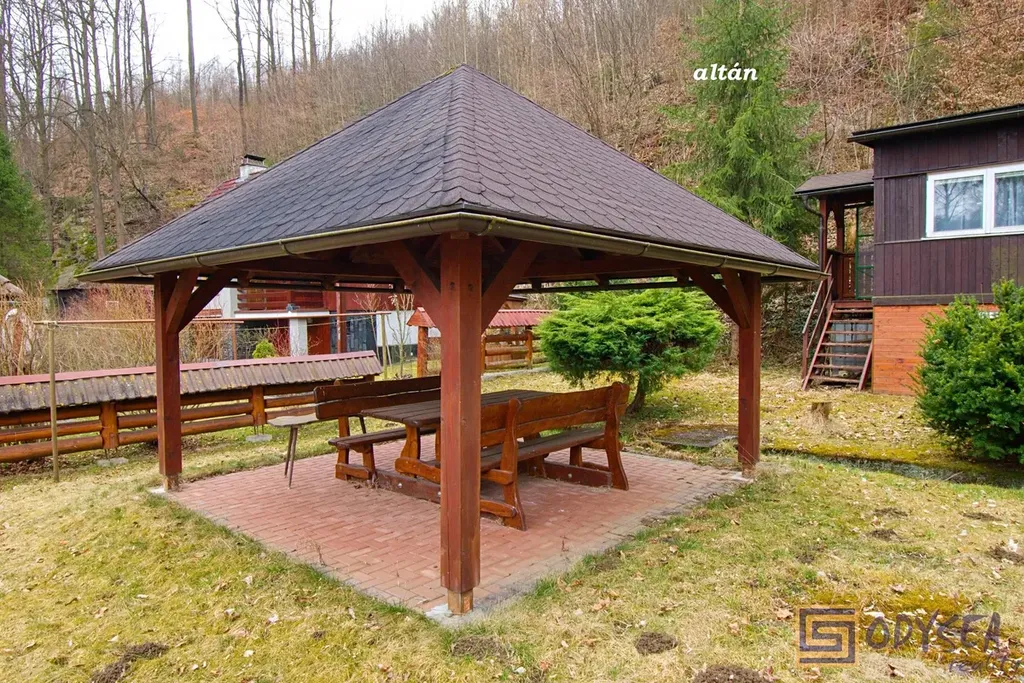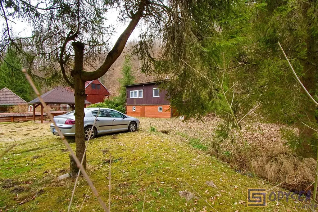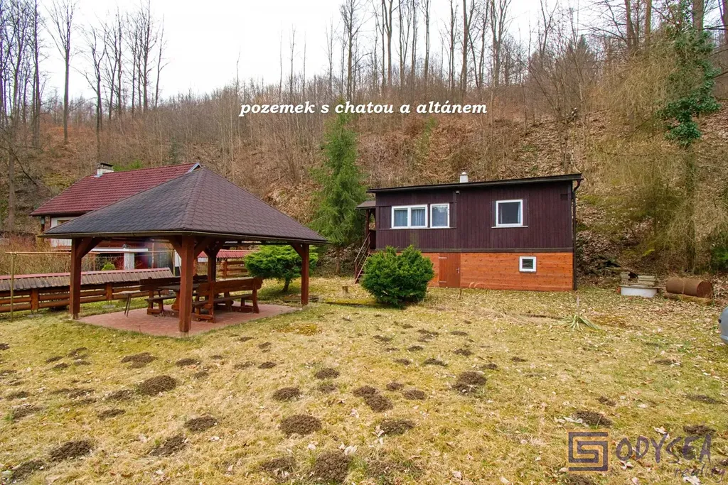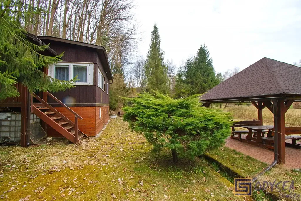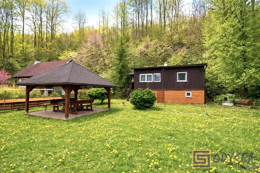 Exklusivně nabízíme prodej rekreační chaty o zastavěné ploše 44 m2 v krásné lokalitě Vítkov - Podhradí. Chata je dřevěné, zateplené konstrukce se zděnou podezdívkou. Je přízemní, prostorná - nachází se zde 3 pokoje (jídelna, obývací pokoj, ložnice), kuchyňský kout a koupelna s WC, pod celou obytnou částí jsou k dispozici úložné prostory (dřevník, skladovací prostor, technický kout s bojlerem na ohřev vody). Interiér chaty je udržovaný, dřevěné obložení bylo pravidelně lakováno, chata je elektrifikovaná (220 V) s rozvodem vody z vlastního zdroje (vrtaná studna s pitnou vodou), před cca sedmi lety byla na střeše položena nová krytina - lepenka. Pozemek je rovinatý, krom chaty se na něm nachází altán a několik jehličin, výměra zahrady je 430 m2. Součástí prodeje je i podíl 1/9 na společném pozemku (dalších 304 m2) - jedná se o travnatou plochu, která se nachází uprostřed této and #34;osady and #34;. Několik kroků od chaty je společná studánka s velmi kvalitní pitnou vodou. Celé údolíčko s nedalekou řekou působí velice romanticky (viz fotogalerie) - doporučujeme.