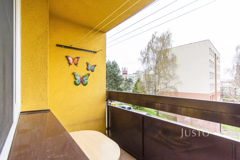 Byt samotný má již vyzděné jádro, koupelna je od toalety oddělena. Obývací pokoj má výměru 18 m², pokoje 18 m² a 15 m². Byt disponuje skvělou uzavíratelnou komorou, ve které jsou policové až po strop a díky nim je v této místnosti spousta úložného prostoru. Kuchyně (12 m²) je vybavena linkou na míru, vestavnou myčkou, digestoří, plynovým sporákem a troubou. O ostatních spotřebičích je možno jednat, zda v bytě zůstanou či nikoliv. V jednom z pokojů ale určitě zůstane vestavná skříň, která je po celé délce pokoje.