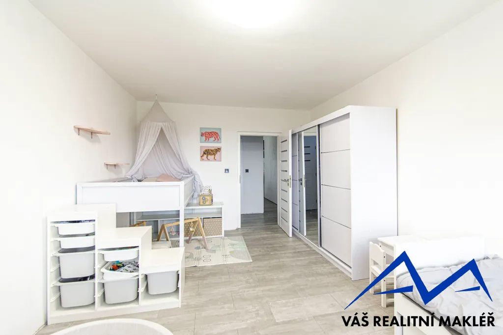 Byt o celkové výměře 79 m² prošel pečlivou rekonstrukcí a je laděn do moderních, světlých tónů, které působí čistě a nadčasově. Dispozice nabízí neprůchozí a prostorné pokoje, což zajišťuje dostatek soukromí i komfortu pro rodinné bydlení.