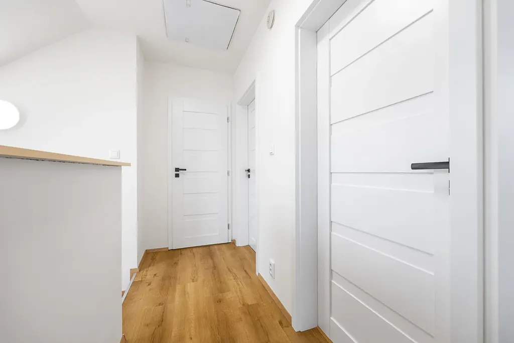 Dům je dispozičně velmi dobře řešený s kuchyní a obývacím pokojem ze kterého je přímý vstup na venkovní terasu. Dále se čtyřmi prostornými ložnicemi, nádhernými dvěma koupelnami, kde v 1.NP se nachází první koupelna s wc, sprchovým koutem, umyvadlem, přípravou na pračku a v 2.NP druhá koupelna s wc, vanou, umyvadlem s prostornou skříňkou. Obě koupelny jsou také vybaveny elektrickým podlahovým vytápěním.