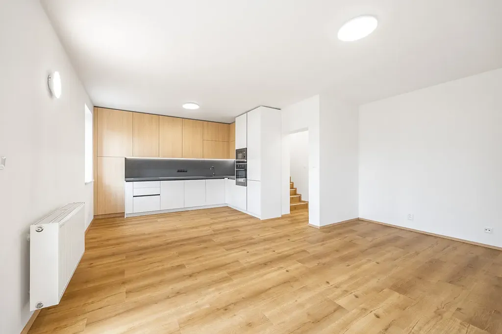 Dům vypadá přesně jak vidíte na fotografiích, nejedná se o vizualizaci. Kuchyně je vyrobena na míru a kompletně vybavená spotřebiči (elektrická trouba, mikrovlnná trouba, indukční deska, myčka). Kuchyně do tvaru L je velkorysá s důrazem na dostatek úložných prostor a pohodlí při každodenním využívání.