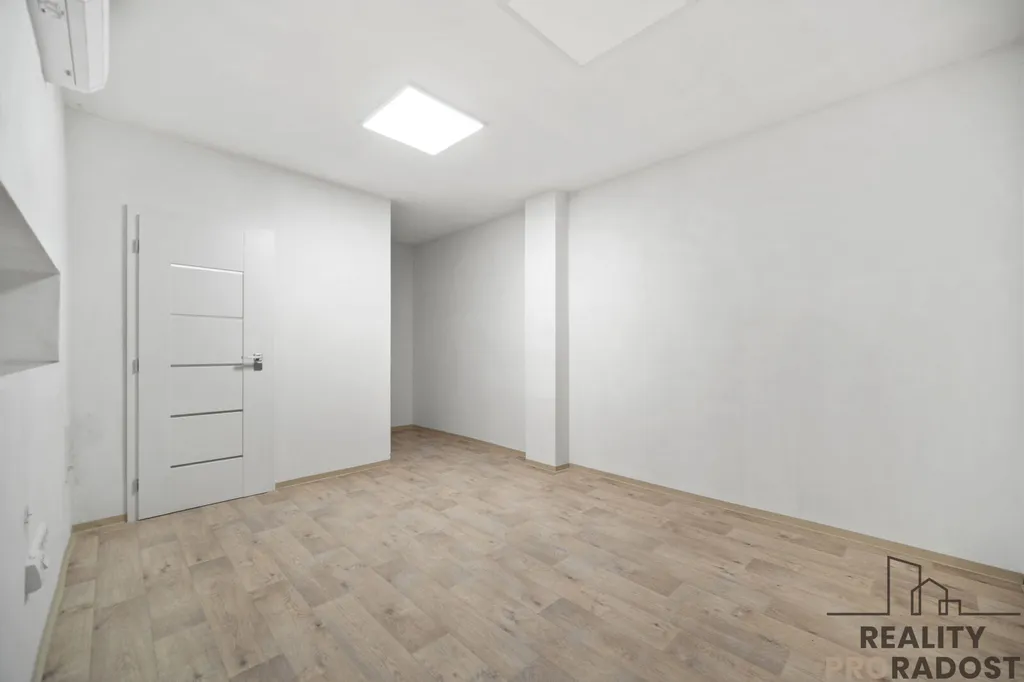 Součástí je zázemí s kuchyňkou, samostatným WC a menší místností pro kancelář nebo odpočinek.