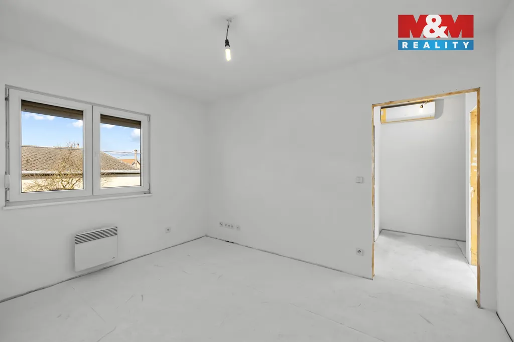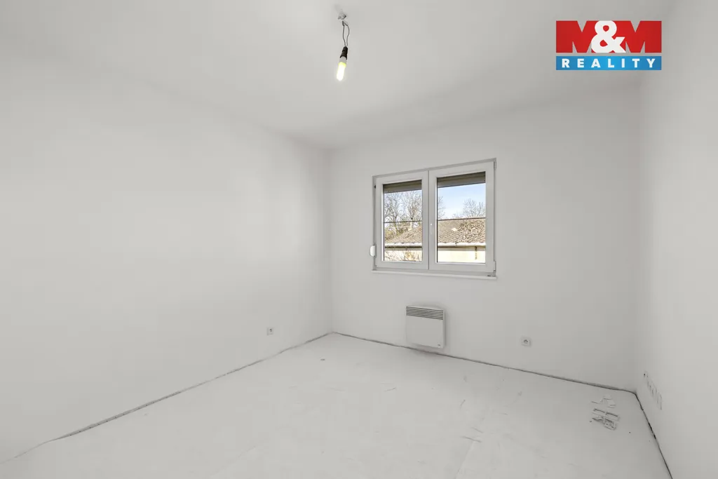 Dům je čerstvě vymalovaný, interiér je připraven k doladění dle představ nového majitele (dveře, podlaha). Na zemi je podklad pro plovoucí podlahu.