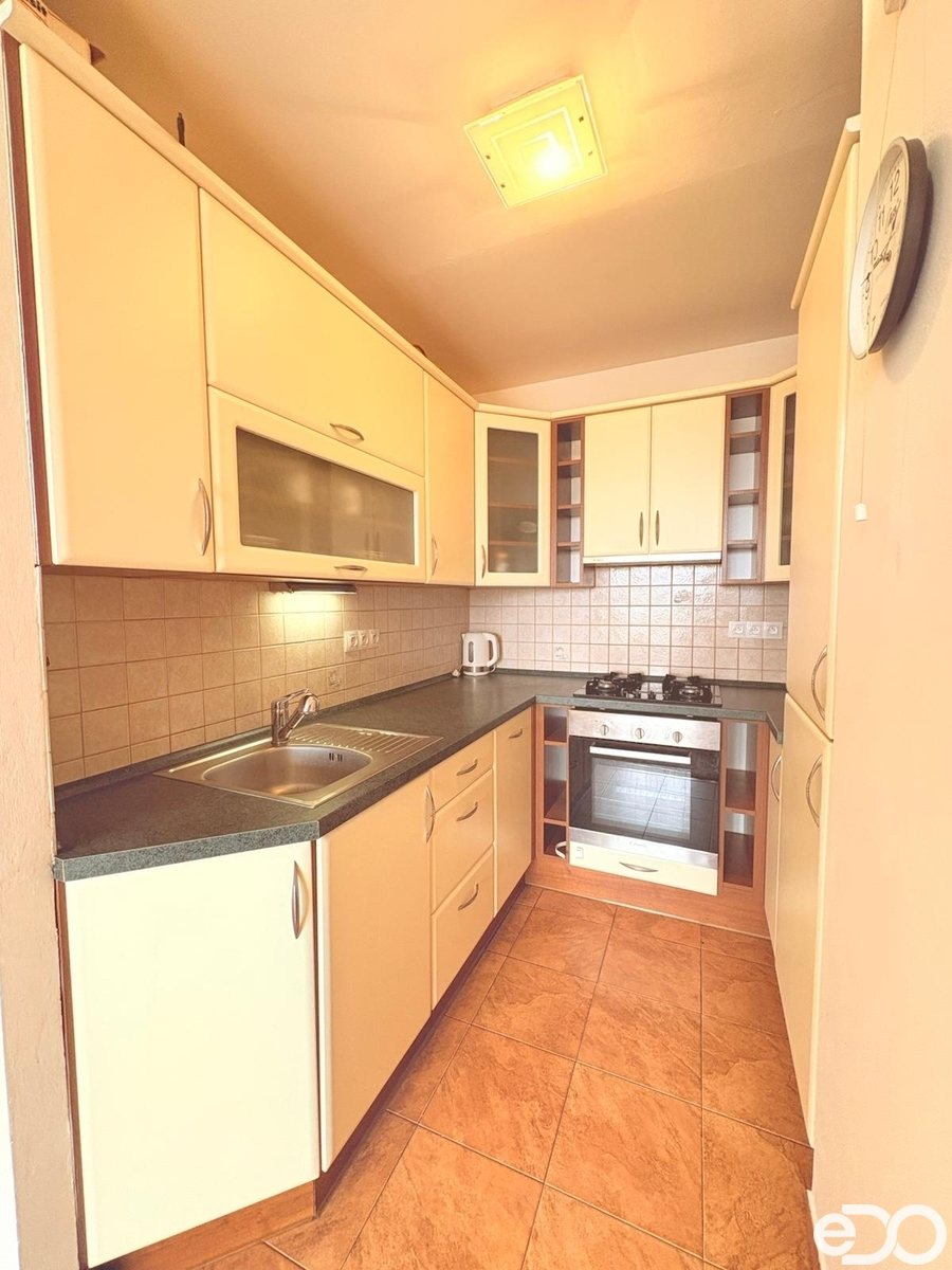 Velmi rád bych vám v zastoupení majitele nabídl k pronájmu atraktivní bytovou jednotku o dispozici 2+kk, a obytné ploše 45 m2, která se nachází v 9. patře revitalizovaného panelového domu s výtahem v ulici Steinerova, Praha 4 - Háje. Bytová jednotka se skládá z obývacího pokoje s kuchyňským koutem a spotřebiči (plynový sporák, digestoř, lednice s mrazákem, nová trouba), ložnice s úložnými prostory (majitelkou bude koupena nová postel s matrací), koupelny s menší vanou (pračka není), toaleta je samostatně, v chodbě vestavěné skříně na míru. Bytová jednotka se nabízí zařízená, okna má s výhledem do zeleně směrem k Milíčovskému háji.