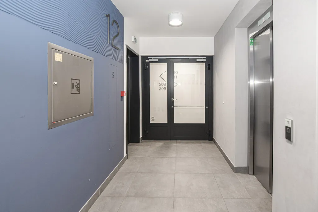 Byt je velmi vzdušný a nabízí dostatek denního světla. Při vstupu se nachází předsíň s na míru vyrobenou šatní skříní a botníkem. V celém bytě se aktuálně instalují stropní světla.