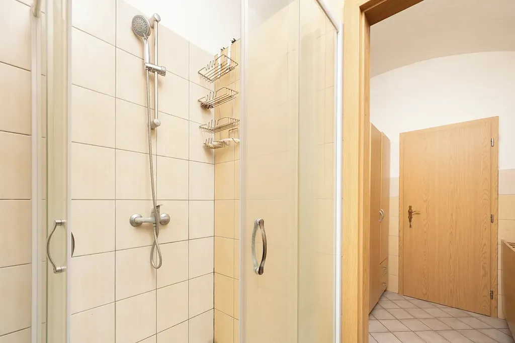 Byt má vstup z dvorní části domu a nabízí tři samostatné pokoje, samostatnou kuchyni s barovým pultem a jídelním prostorem, koupelnu se sprchovým koutem, samostatné WC, úklidovou místnost a chodbu. Dispozice umožňuje komfortní sdílené bydlení bez průchozích místností. Součástí užívání je také možnost posezení ve vnitřním dvoře domu.
