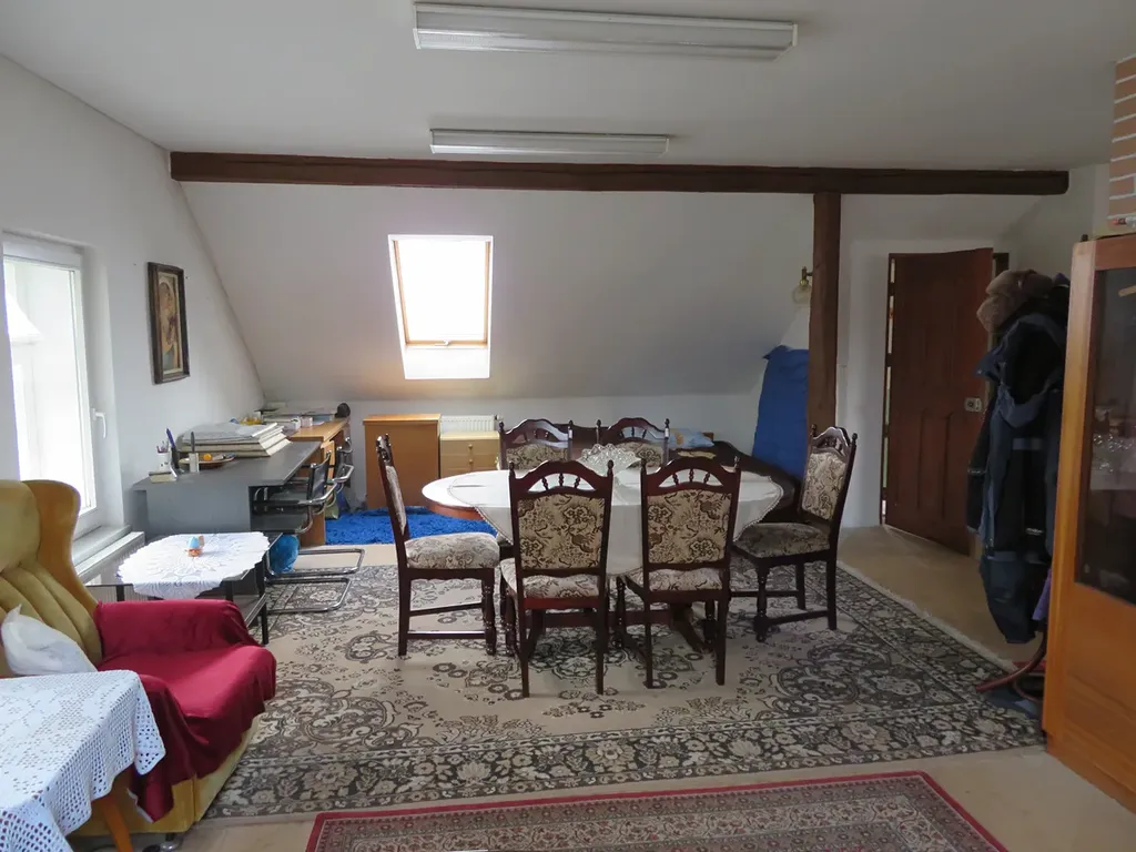 • Dispozice a prostory: Ubytovna se pyšní zastavěnou plochou 206 m2 na pozemku 1 104 m2. Zděný dům má tři podlaží, včetně prostorného sklepa. Podkroví, které slouží jako velký byt, lze snadno rozdělit na další pokoje, což vám dává obrovskou flexibilitu.