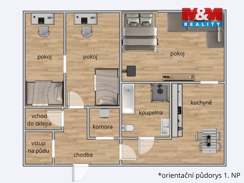 Nově nabízíme rodinný dům ve Vimperku o dispozici 3+1 a podlahové ploše cca 120 m2. Dům je jednopodlažní a velmi dobře prakticky řešený. Dům je částečně podsklepený, tudíž nabízí dostatek úložného prostoru pro uchování potravin či skladování. Velkou výhodou je i prostorná půda, kterou je možné zrekonstruovat a tím rozšířit obytnou část domu. Proběhla zde částečná rekonstrukce, jako nová dlažba, nová plastová protihluková okna a z jedné strany nová střešní kritina. Voda je napojená na vlastní kopanou studnu a odpady jsou řešeny vlastní čističkou odpadních vod. Vytápění zajišťují kamna s výměníkem na tuhá paliva. Dům je pronajatý slušnými nájmníky, tudíž se dá využít i pro výhodnou investici k pronájmu.