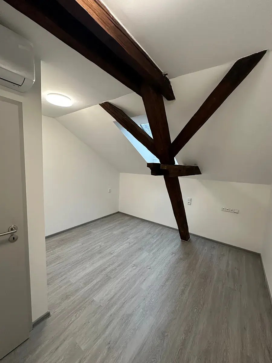 Veškeré sanitární vybavení je z kvalitních materiálů. Okna zn. Velux, dveře Porta Doors, sanita od firmy Ptáček, tepelné čerpadlo zn. Dražice. K bytu náleží sklepní prostor.