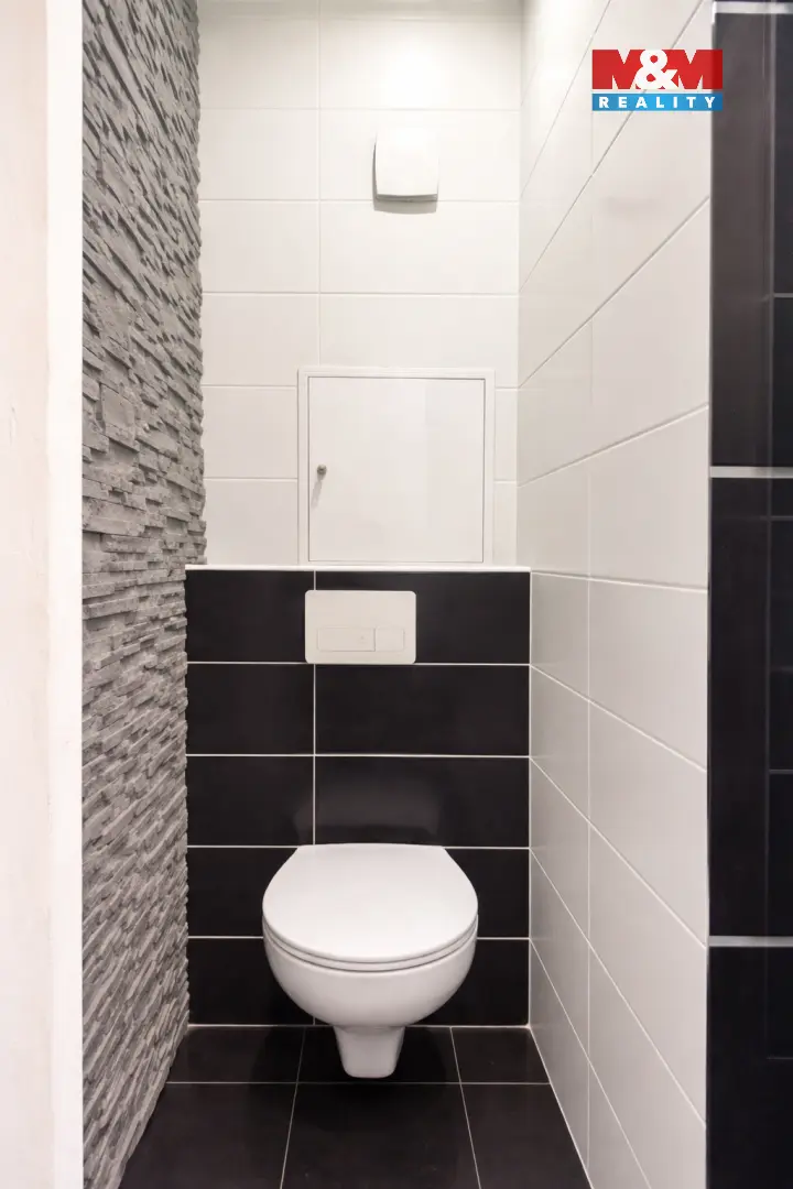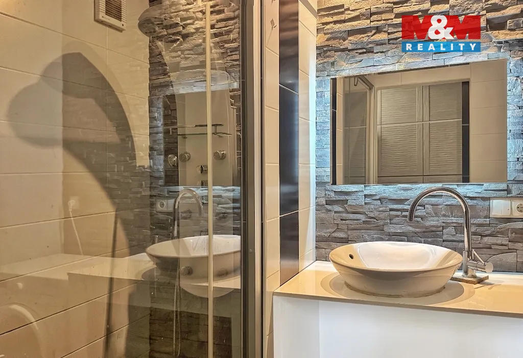 Kuchyň je prakticky řešená a plně vybavená – k dispozici je sklokeramická varná deska, vestavěná mikrovlnná trouba s funkcí pečení, lednice a barové posezení s židlemi, které šetří prostor a zároveň dodává interiéru moderní charakter. Byt prošel zdařilou rekonstrukcí před 7 lety.