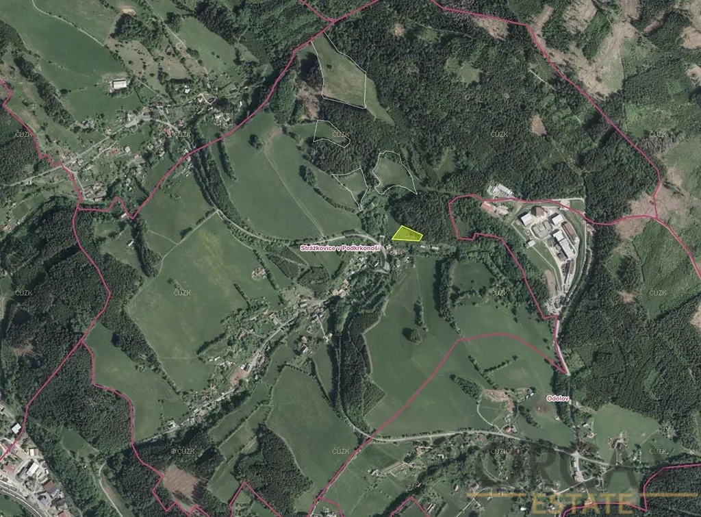 Nabízíme k prodeji spoluvlastnický podíl ve výši id 1/2 na pozemku v k.ú. Strážkovice v Podkrkonoší. Jedná se o parcelu č. 375/1 zapsanou na LV 306 o podílové výměře 1399 m2 (podíl přepočítán). Dle katastru je pozemek evidován jako trvalý travní porost, je rovinný a v nejširší části měří cca 54 m. V současné době je pozemek propachtován a to na dobu neurčitou s výpovědní lhůtou 1 rok. Podle územního plánu se jedná o plochu zemědělskou.