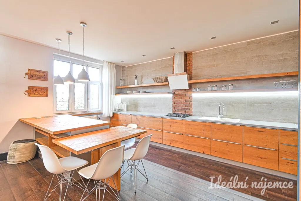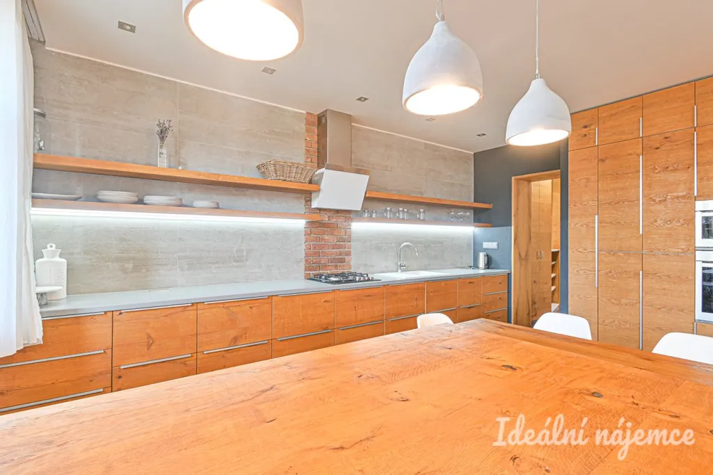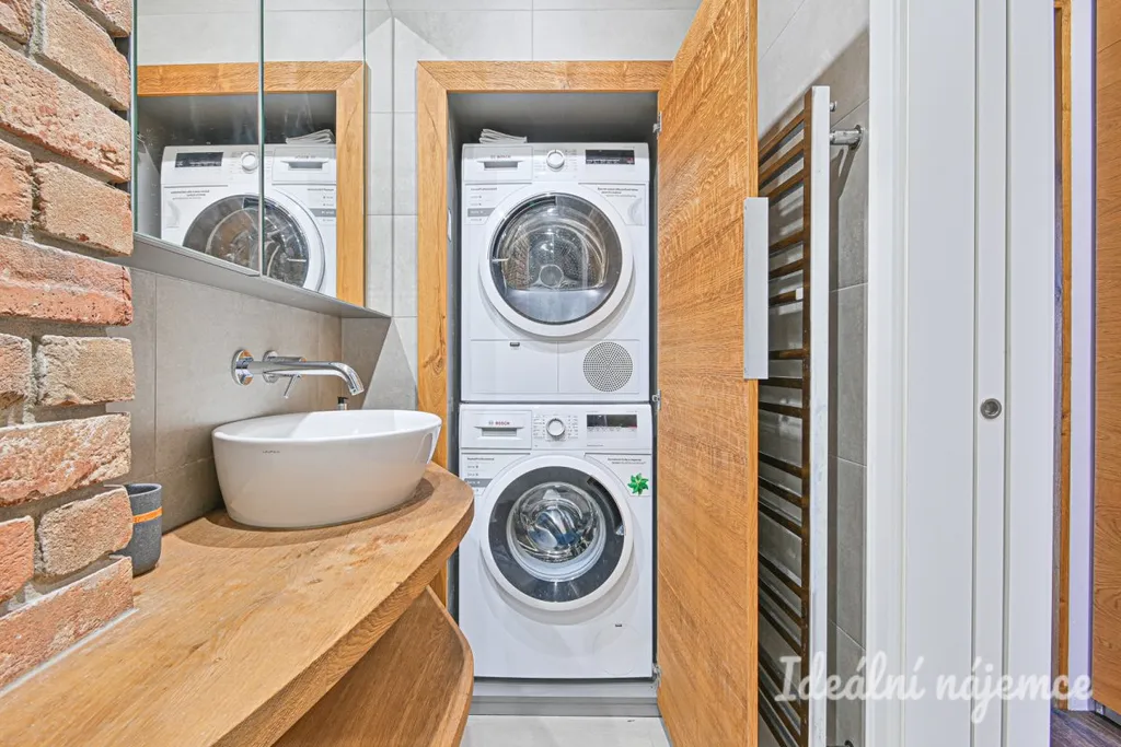 Byt je plně vybavený dle fotografií.. Kuchyň je vybavena moderními spotřebiči včetně vestavěné trouby, varné desky, myčky a lednice. Obývací část nabízí sedací soupravu, konferenční stolek a stylové dřevěné prvky. Ložnice je zařízena manželskou postelí a dostatkem úložného prostoru. V koupelně se nachází sprchový kout, umyvadlo a toaleta. Součástí bytu je i pračka a sušička. V ceně je zahrnut internet.