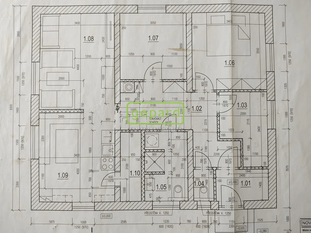 Podlahy - keramická dlažba (v zádveří, v kuchyňském koutě a spíži, v místnostech hygienického zařízení), laminátová „plovoucí“ podlaha/vinyl/koberec (v obytných místnostech).