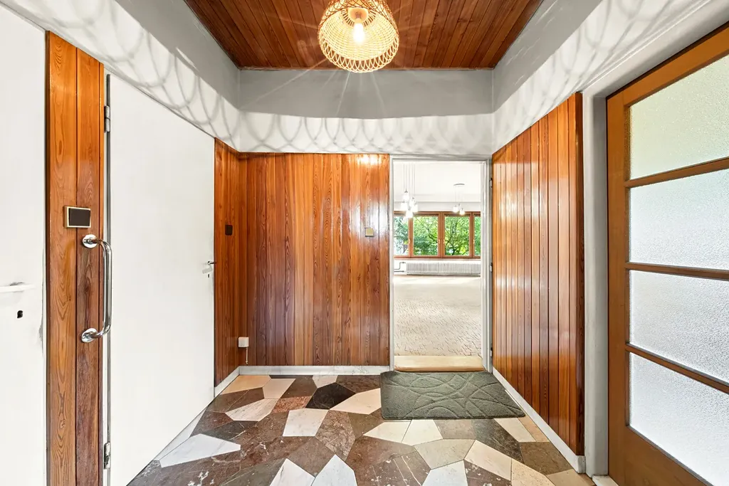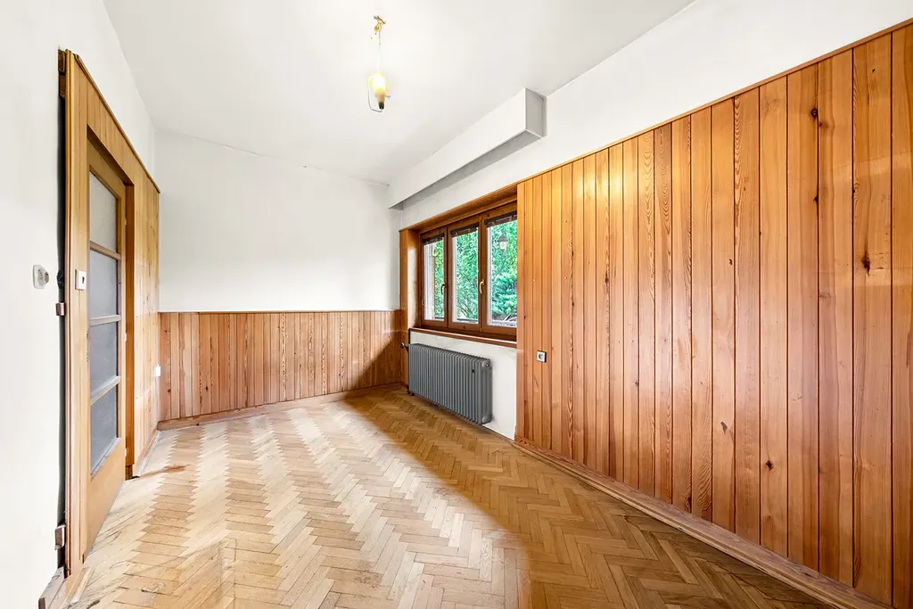 Na pozemku stojí rodinný dům obklopený zelení, o dispozici 3+1, (pokoje 28m²+11m²+11m²) kuchyně, koupelna + samostatné WC, vstupní hala, dohromady cca 70m², celé 1.NP je výška stropů 280cm.
