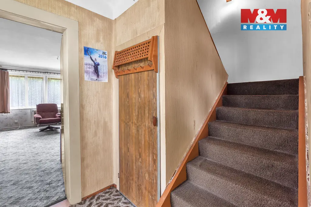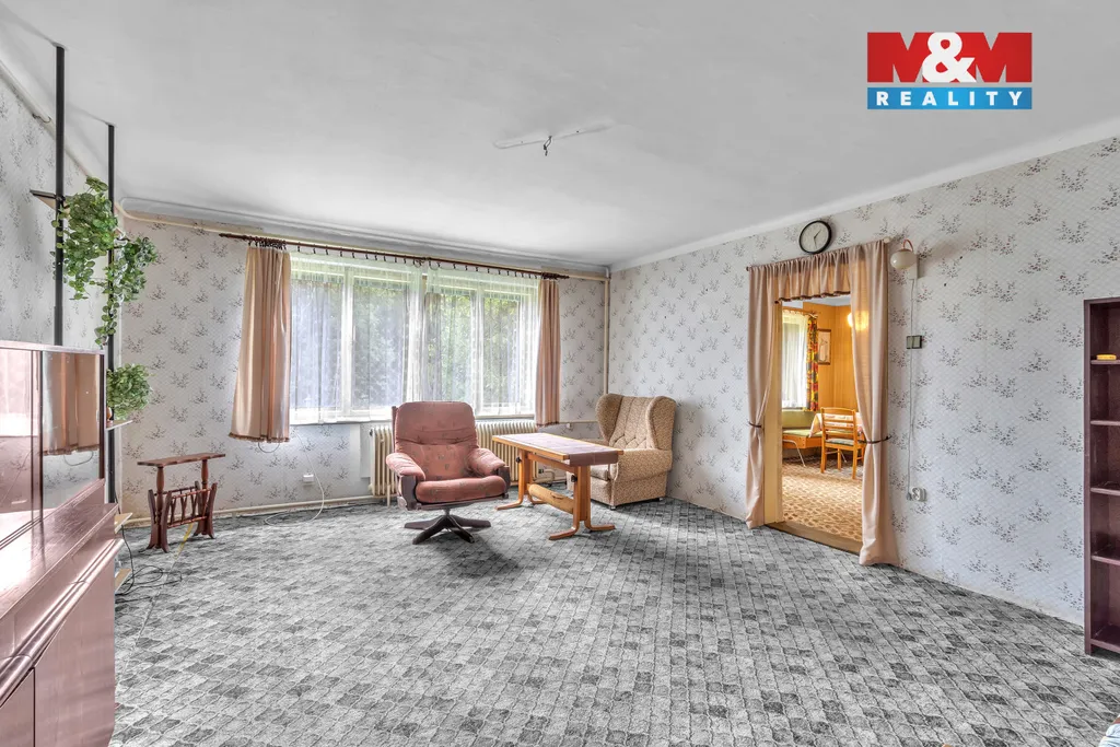 Nabízíme k prodeji rodinný dům v klidné části obce Komárov u Dvora Králové, ideální pro ty, kteří hledají klid a soukromí. Dům je samostatně stojící a je v původním stavu, což nabízí skvělou příležitost pro rekonstrukci dle vlastních představ. Nemovitost má dvě nadzemní podlaží a malý sklep pod schody. Dispozice: přízemí - prosklená veranda, předsíň, obývací pokoj, jídelna, kuchyň, spíž, koupelna s vanou, umyvadlem a wc, chodba a kotelna na tuhá paliva. V podkroví jeden pokoj a půda. Na pozemku o rozloze 2716 m² jsou dvě zděné garáže a kolny. Díky své poloze v klidné části obce je tato nemovitost ideální pro rodinné bydlení nebo i rekreaci. Další informace u makléře.