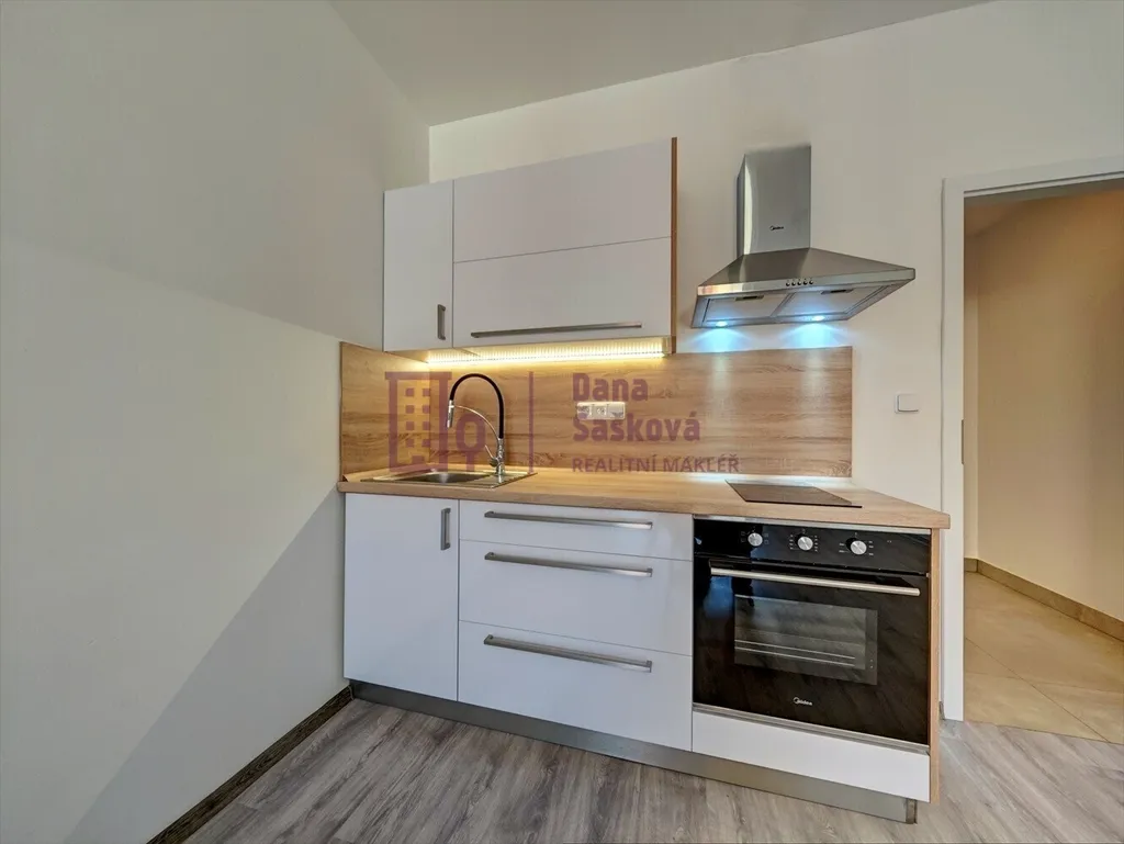 Dispozice 1+kk nabízí vstupní chodbu, koupelnu s vanou a toaletou, pokoj s kuchyňským koutem a vstupem na sdílenou terasu o výměře 7 m2. Byt orientovaný na severozápad je vybavený kuchyňskou linkou s vestavěnou elektrickou troubou, varnou deskou a digestoří.