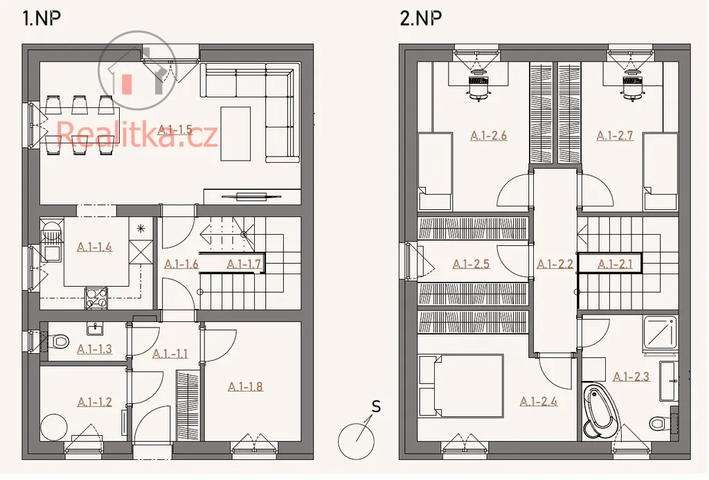 Projekt Třídomí nabízí celkem šest jednotek, dispozice domu A1 a B1 jsou následující.