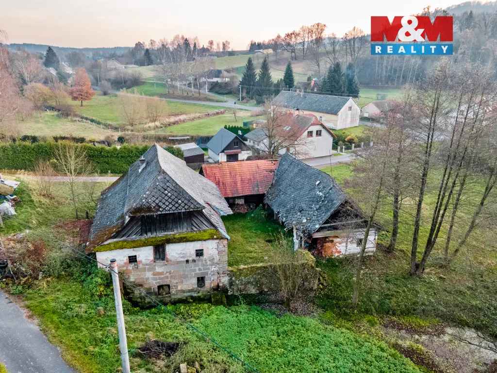 Nabízíme k prodeji starý mlýn v obci Horní Dobrouč, nacházející se na pozemku o rozloze 5 425 m². Jedná se o objekt, který je vyobrazen již na vojenských mapách z roku 1768. Bohužel již není v provozu. Objekty a pozemky s rybníčkem se nachází ve velice klidné lokalitě a v obci Dolní Dobrouč je veškerá občanská vybavenost. Nemovitost se skládá z hlavního objektu (mlýn) a ze dvou stodol, který vytváří uzavřený dvůr. Do objektu je přivedena elektřina, vodovod je na hranici pozemku a kanalizace je řešena jímkou. Pozemky jsou ideální pro výstavbu nových domů, případně na kompletní rekonstrukci stávajícího objektu se širokými možnostmi využití, například na agroturistiku, bydlení, chalupaření a podobně. K dispozici ihned. Pro více informací, případně prohlídku, nás neváhejte kontaktovat.
