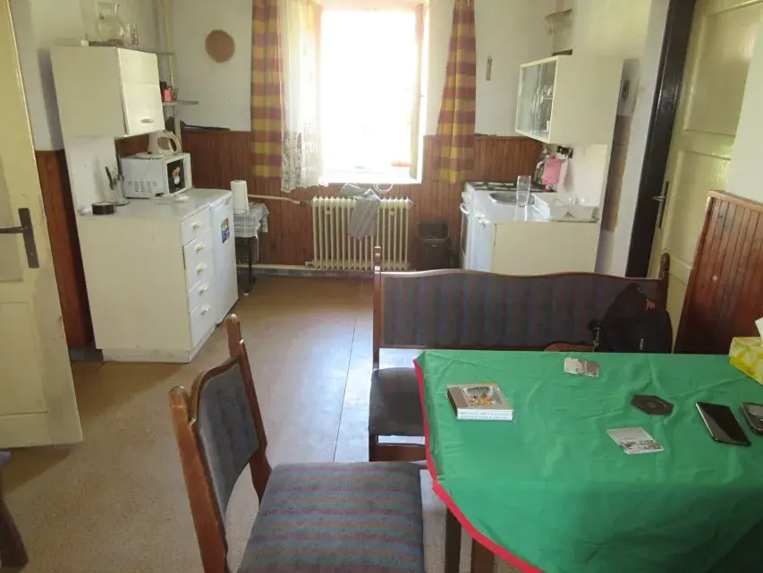 Topení ústřední na TP + lokální na tuhá paliva, obecní vodovod, kanalizace, el.230/400, dřevěná okna. Součástí prodeje je vedlejší stavba - dílna 52 m2, zděný chlívek 8 m2, dřevěná kolna 4 m2 a vlastní studna (h 8 m). Dům se prodává vyklizený.