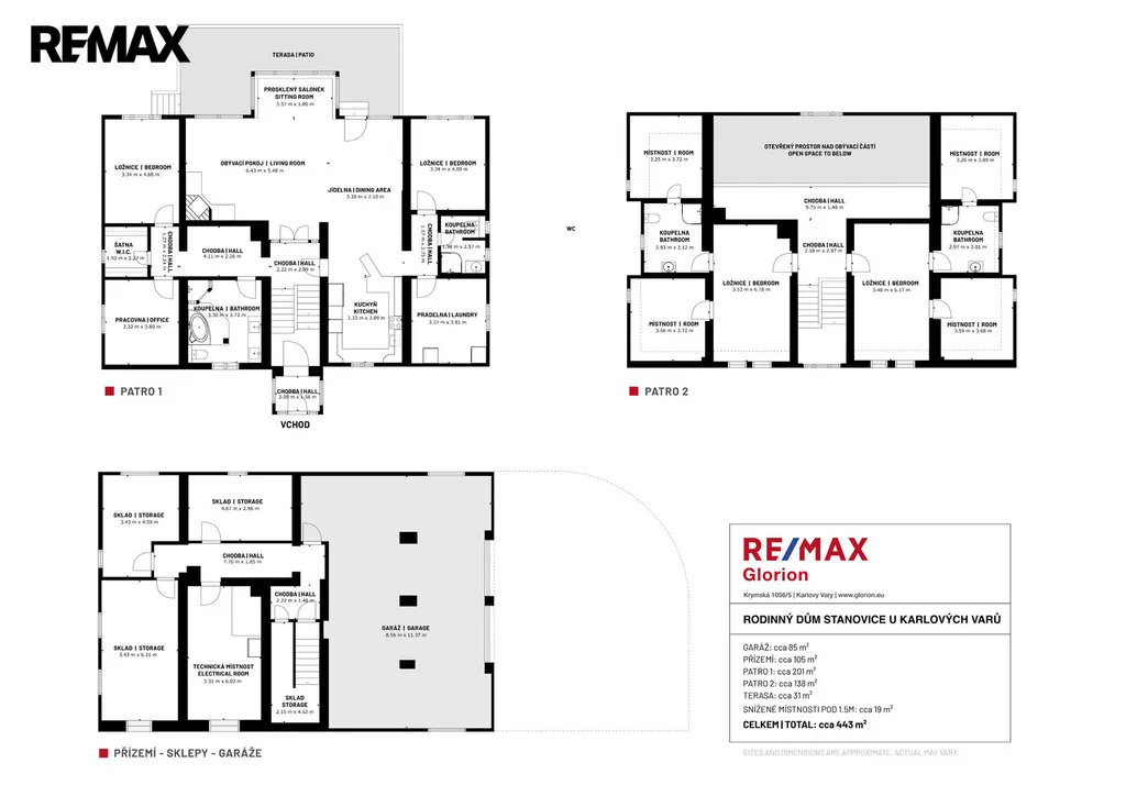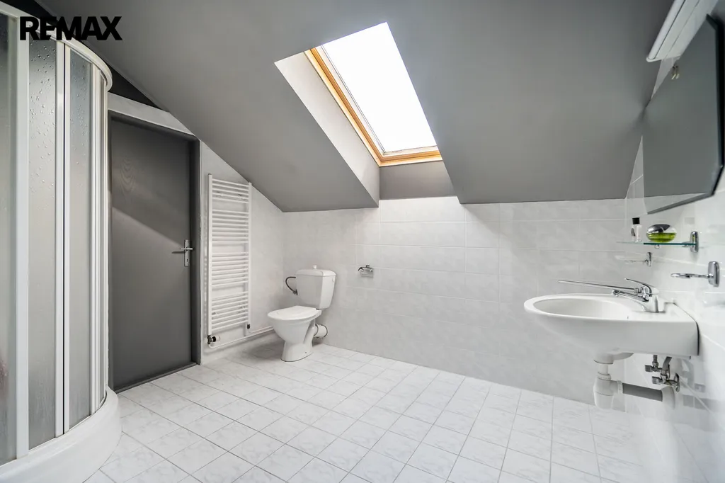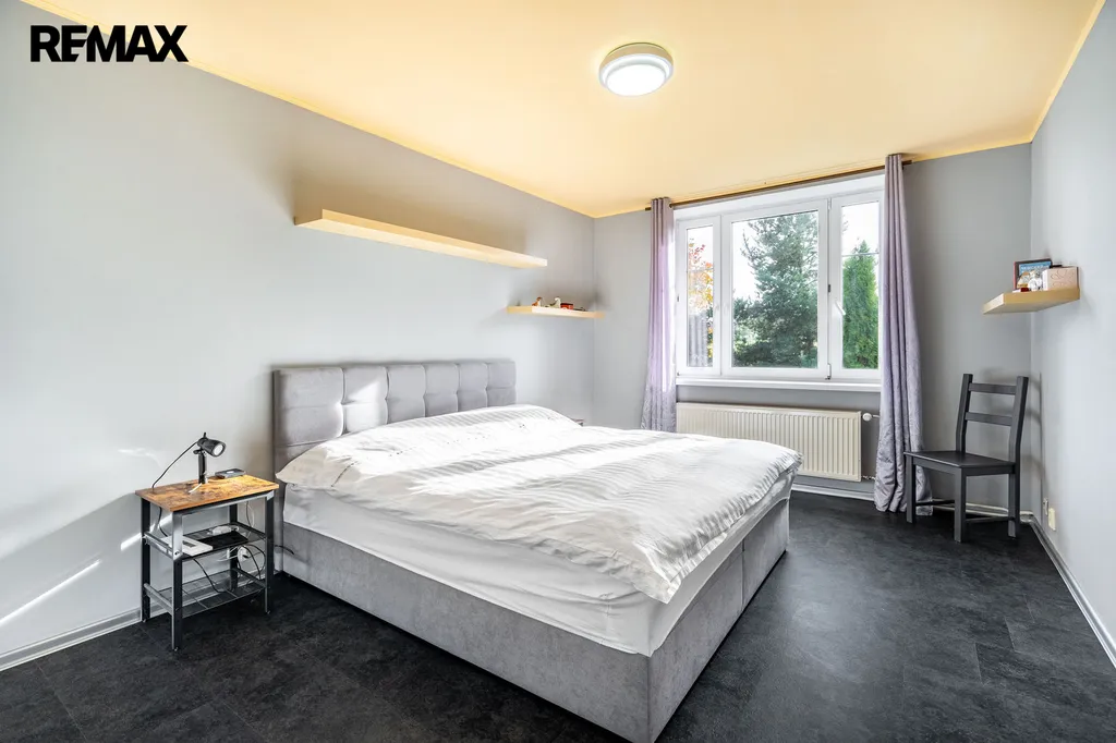 V přízemí se nachází obývací pokoj propojený s kuchyňským koutem a jídelnou, což vytváří ideální prostor pro společné chvíle s rodinou či přáteli. Dále zde najdete hlavní ložnici s šatnou, samostatnou pracovnu pro klidný home office a prostornou koupelnu s vanou. Na druhé straně domu je k dispozici prádelna, další ložnice a koupelna se sprchovým koutem.
