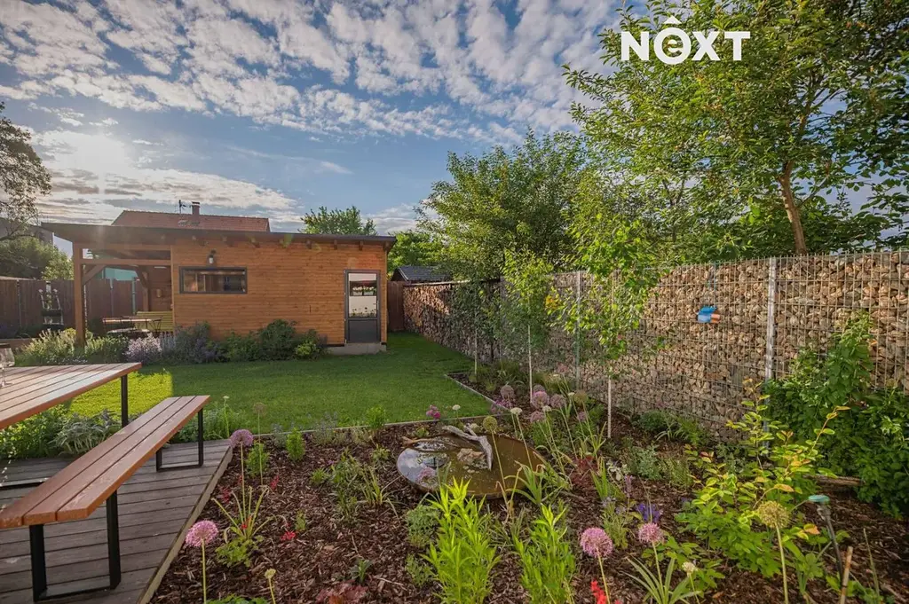 Velkým benefitem je slunná orientace domu i zahrady na jih. Na pozemku o výměře celkem 483 m² najdete udržovanou zahradu ve ferdinandovském stylu s okrasnými i jedlými záhony, 2 terasy, grill point pro letní posezení, zahradní domek se zavedenou vodou, elektřinou, krbovkami a kuchyňkou, dílnu i sklep.