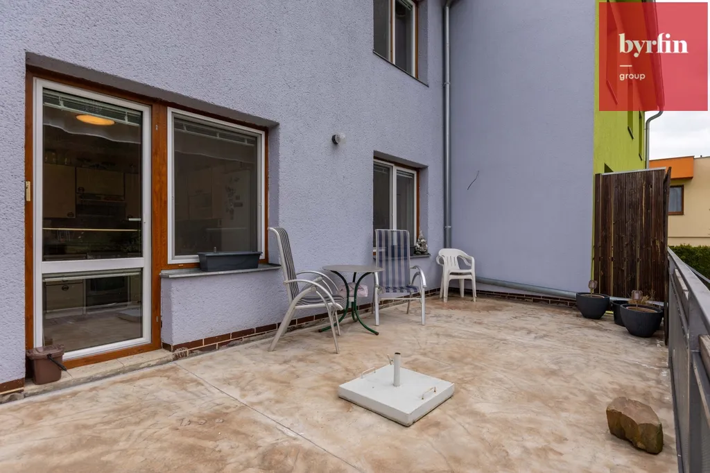 Přístup do zahrady je možný ze suterénu, terasy bytu, i kolem domu.