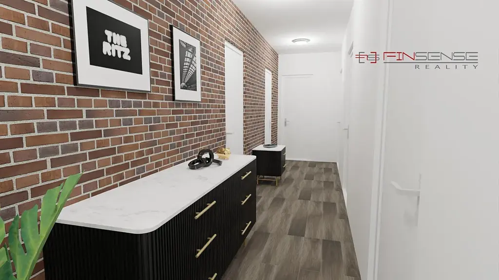 Interiér je připraven na montáž elektroinstalace, vodovodu, topení, podlah a nový majitel si tedy může doladit vše podle svých představ. V obývacím pokoji je instalován komín od společnosti Schiedel s integrovanou krbovou vložkou a chodba je parádně prosvětlena světlovodem od firmy Velux.