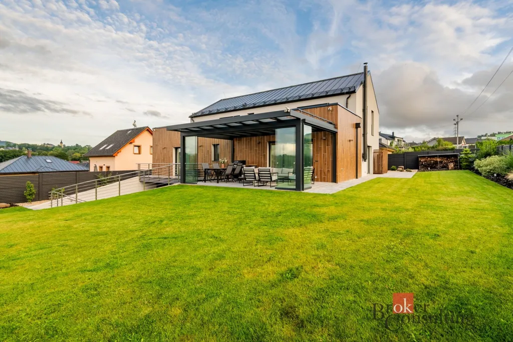Jedinečná nabídka luxusního rodinného domu v žádané lokalitě Minkovic u Liberce, jenž byl zkolaudovaný teprve na konci roku 2023 s energetickou náročností B. Jen zde najdete ideální kombinaci životního prostoru v dispozici 6+KK a klidu na každodenní relaxaci na ploše přes 333m2, k čemuž Vám poslouží 25m2 prosklená zimní zahrada s bioklimatickým systémem s možností plného otevření a v podzemním podlaží 71m2 vnitřní bazén a sauna, společně s privátní odpočinkovou venkovní zónou. To vše s důrazem na Vaše bezpečí a pohodlí s garáží pro 2 automobily na ploše přes 46m2, elektrickými a přes aplikaci ovládanými venkovními roletami a zabezpečovacím systémem. Ideální velikost pozemku o velikosti 787m Vám zaručí dostatek prostoru celé Vaší rodině nebo na setkávání s přáteli, kde samozřejmě nechybí integrované zavlažování. A s příchodem soumraku, kdy dům rozzáří noční osvětlení, si to tu teprve zamilujete. Tak neváhejte a přijeďte se osobně přesvědčit, že tento dům byl stvořen přímo pro Vás.