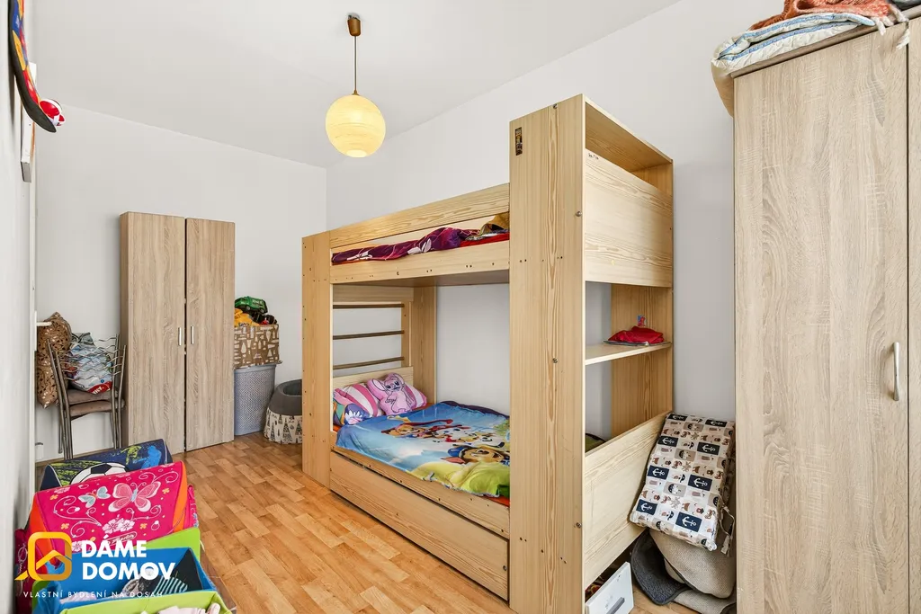 Byt se skládá z kuchyně, obývacího pokoje, dětského pokoje a koupelny se sprchovým koutem a toaletou. Dispozice je praktická a vhodná jak pro vlastní bydlení, tak především jako investiční příležitost. Byt před 10 lety prošel kompletní rekonstrukci.