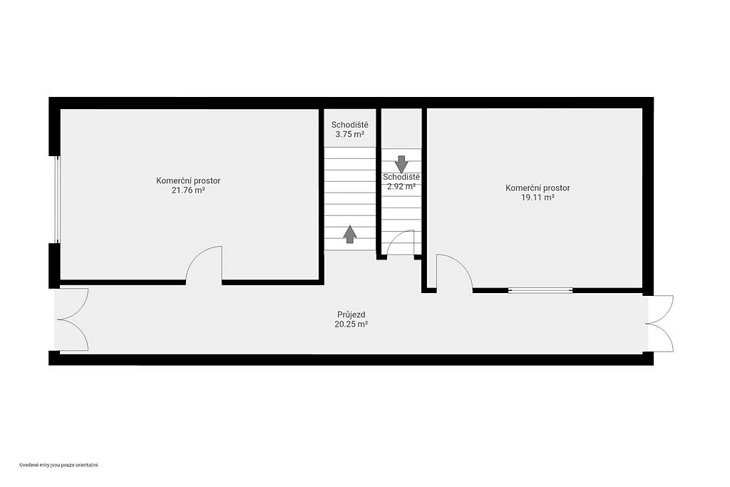 Vedlejší budova nabízí v přízemí komerční prostor, který byl dříve využíván jako prodejna, a dále mezonetovou bytovou jednotku o dispozici 3+kk a ploše 76 m². Tyto prostory jsou ve stavu probíhající rekonstrukce a je nutné je dokončit. Ke komerčním prostorům jsou k dispozici společné toalety.