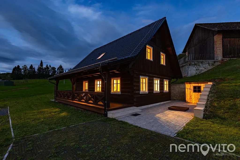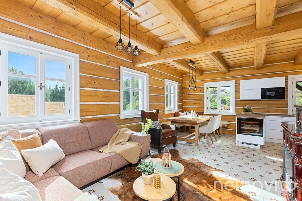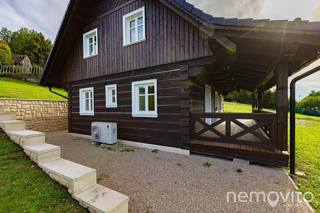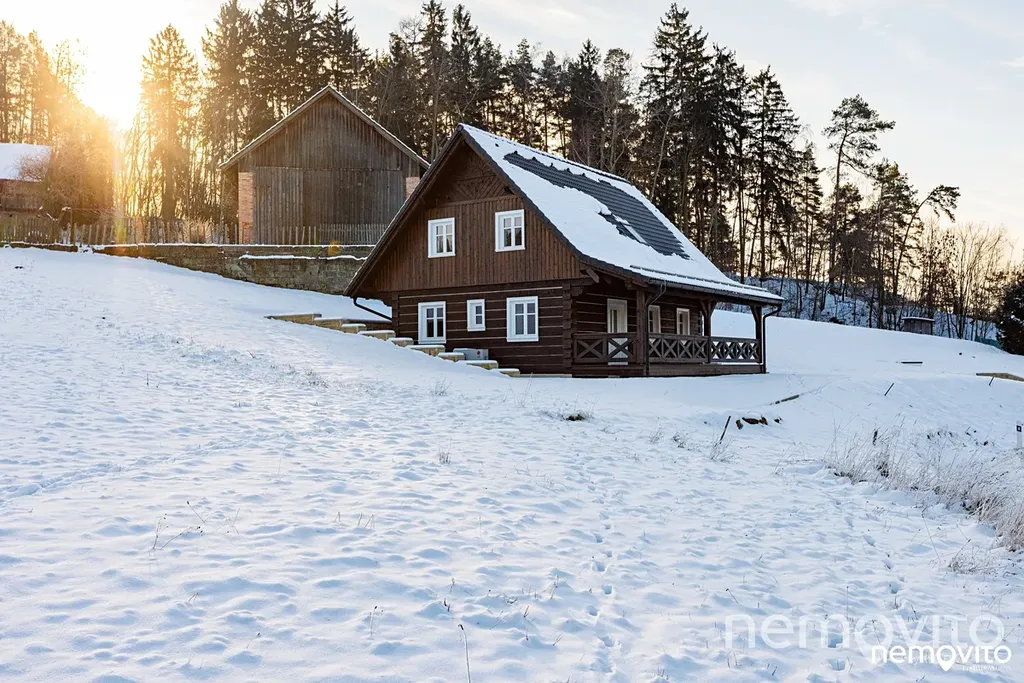 Zbrusu nová roubenka, která v sobě spojuje prvky tradičního stavitelství se soudobými poznatky a technologiemi. Stavba z masivních smrkových hranolů 30x30 cm je vytápěna tepelným čerpadlem a nechybí v ní ani sauna, kachlová kamna nebo špičková kuchyně s vestavěnou vinotékou. Vše v srdci Českého ráje, nedaleko hradu Trosky, v malé a klidné vesničce.
