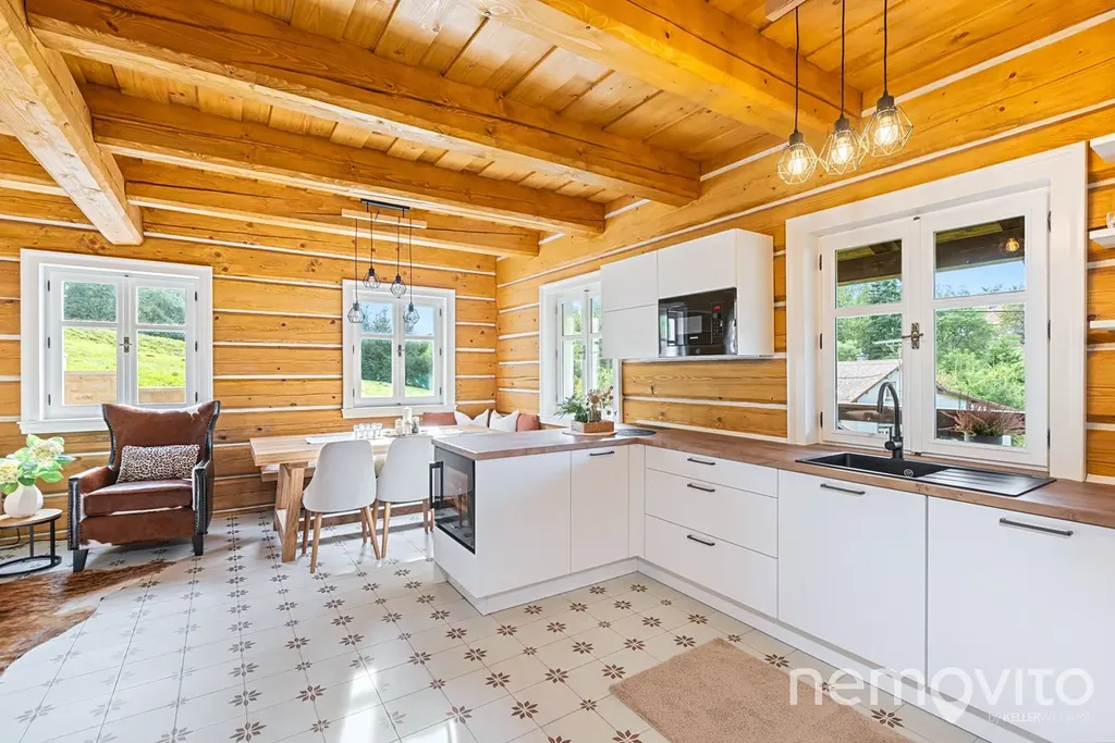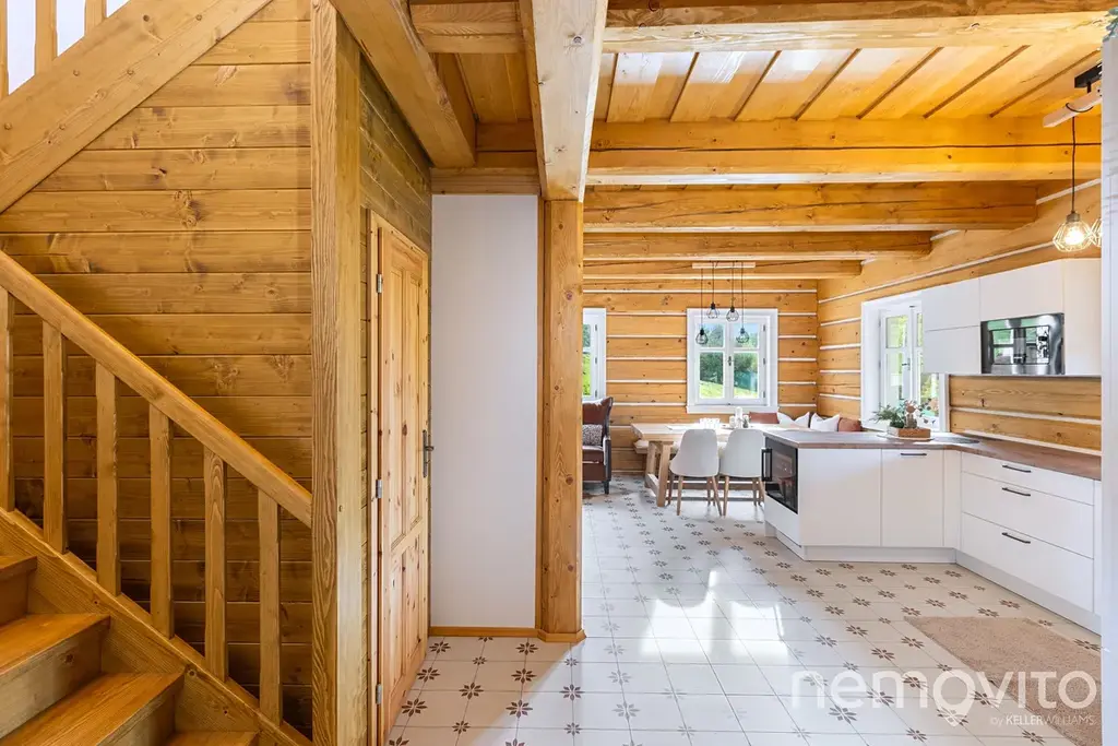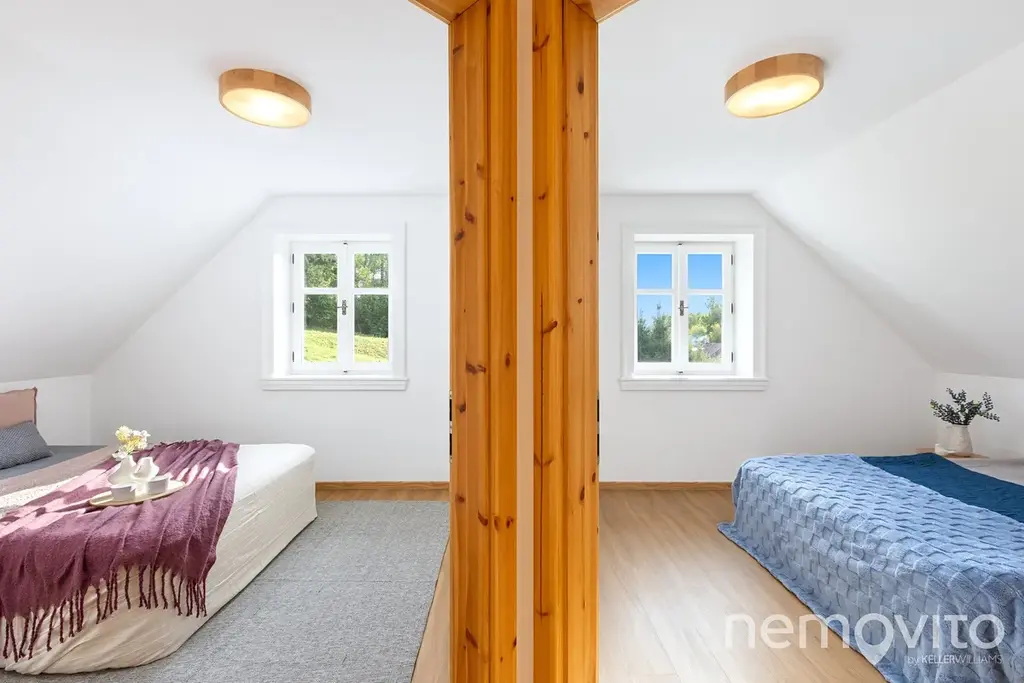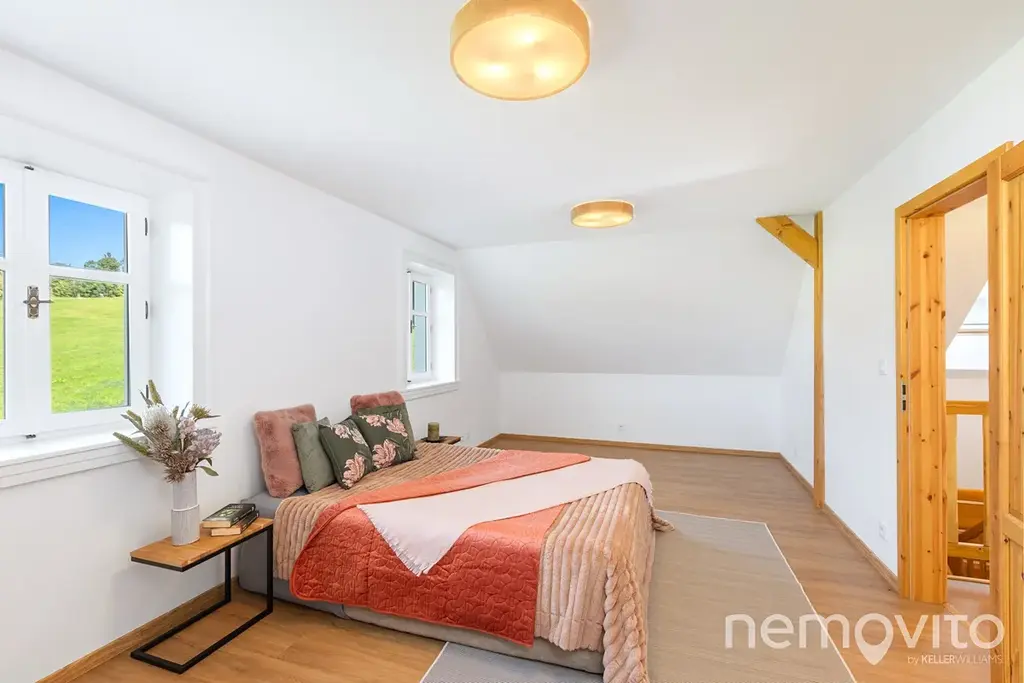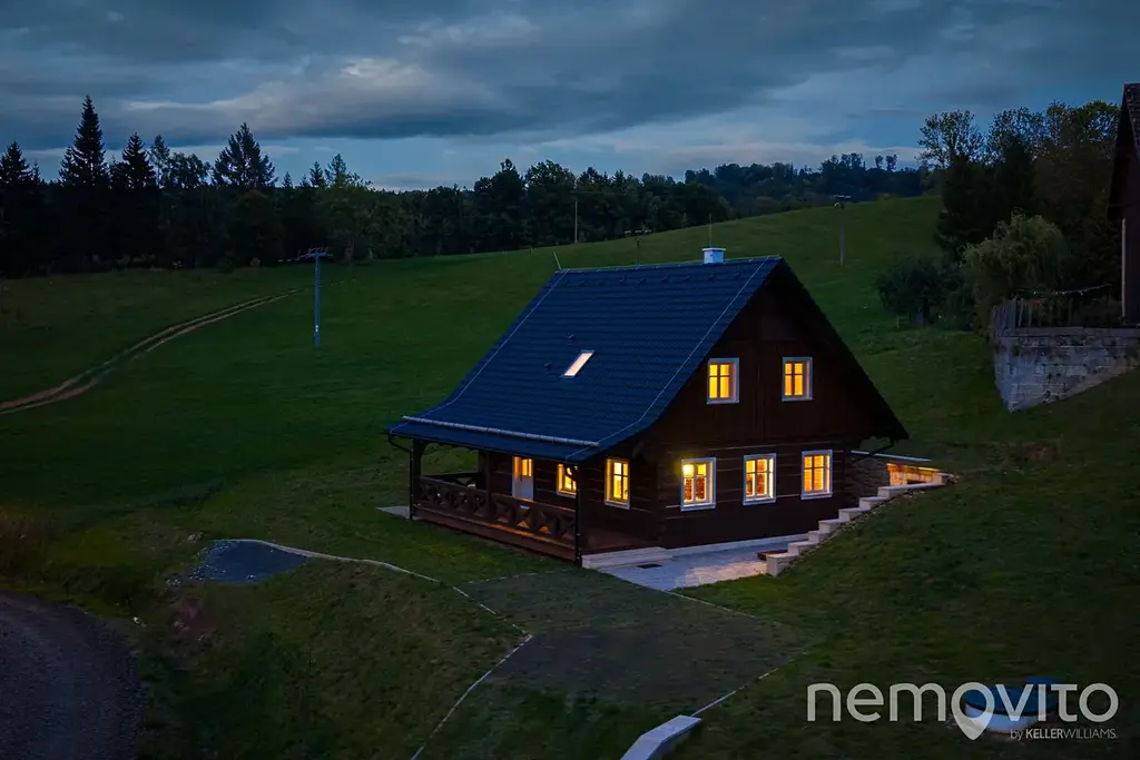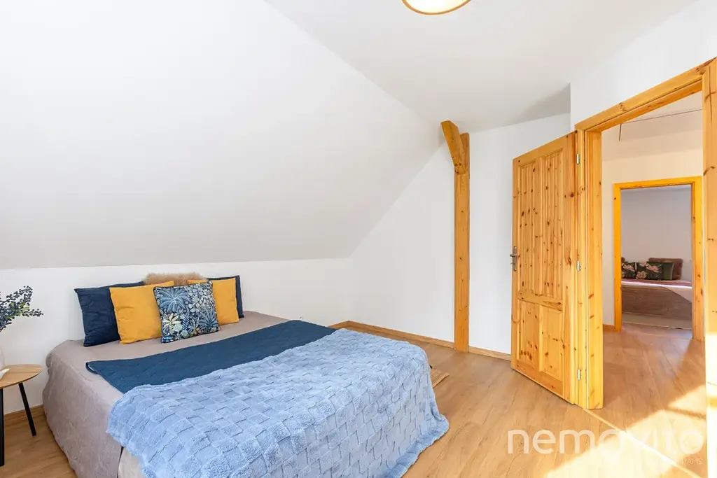 Ložnice mají 2x 12 m2, poslední pak 24 m2 a umožňuje rozdělení na dvě sekce. Vstupní zádveří domu (8 m2) nabízí prostor pro vestavěný nábytek a k dispozici je také technická místnost s místem na pračku a sušičku. V domě jsou použité kvalitní a osvědčené materiály (nejedná se o první roubenku majitele) - masivní dřevěné dveře, kvalitní spotřebiče, odolné nátěry. Vše je řešeno tak, aby bylo trvanlivé a bez investic v následujících letech.