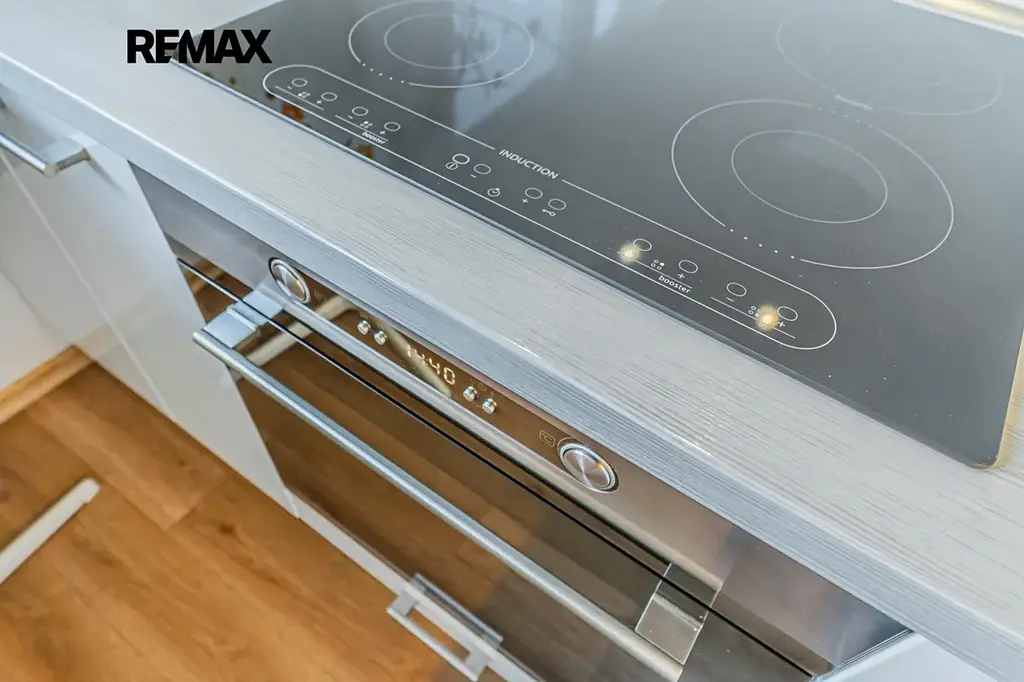 Byt je kompletně zařízený, včetně vybavené kuchyňské linky, chladnice, el. trouby, elektrická varné desky, digestoře, myčky.