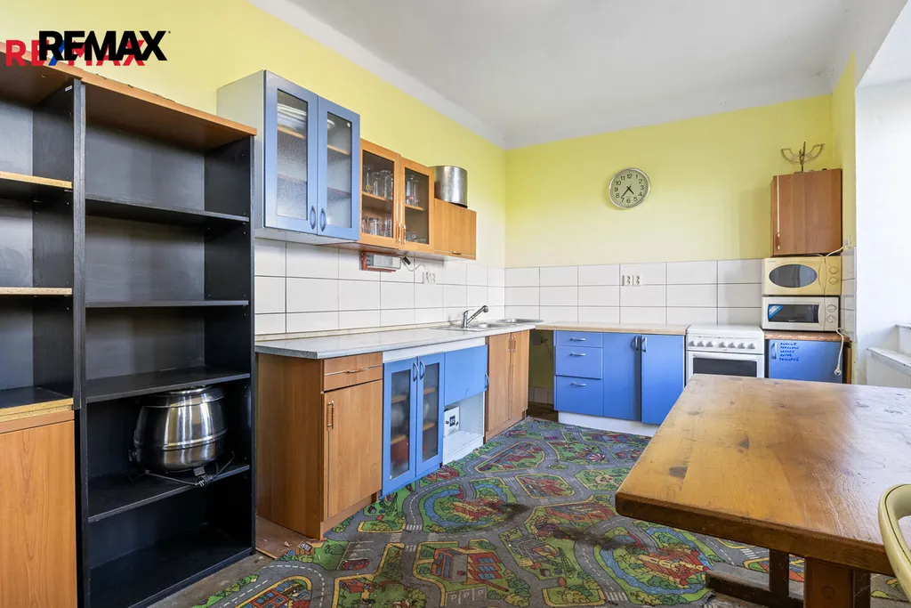 Nemovitost je částečně zrekonstruována a momentálně slouží jako zázemí dnes stále fungujícího motorkářského klubu. Najdete zde zařízenou kuchyň, stylový bar s prostorným sálem, pokoj, koupelnu, toalety a mnoho sklepních místností. Celkem tedy 129 m2 užitné plochy vhodné pro vytvoření útulného bydlení, k tomu téměř 100 m2 sklepních místností, a kryté venkovní sezení. Rozsáhlé podkroví nabízí možnost dostavby dalšího patra, a tím ještě rozšíření obytných nebo komerčních prostor.