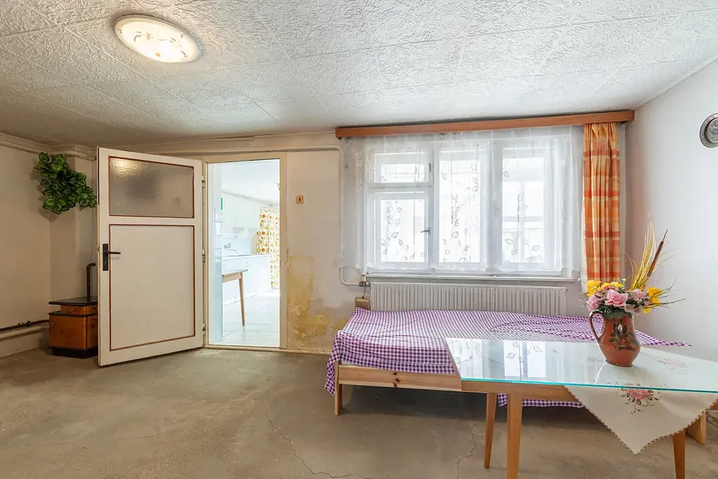 Nemovitost představuje zajímavou příležitost pro ty, kdo hledají menší dům v klidné lokalitě s možností vytvořit si příjemné bydlení podle vlastního vkusu.