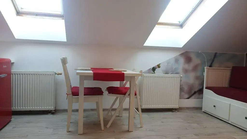 Byt se nachází ve 3. patře cihlového domu bez výtahu, má celkovou plochu přibližně 25 m2, nabízí se celkově zařízený a vybavený. K dispozici je kuchyňská linka, včetně základního kuchyňského náčiní (příbory, talíře, pánve, hrnce) a včetně spotřebičů, jako je lednice, mikrovlnná trouba, varná konvice, varná deska, trouba, digestoř. V obytném pokoji je jídelní stůl se dvěma židlemi, rozkládací postel s kvalitními matracemi, velká skříň a komoda. V předsíni se nachází velká skříň, botník a poličky, v koupelně je umístěná pračka. Ve stropních oknech jsou žaluzie.