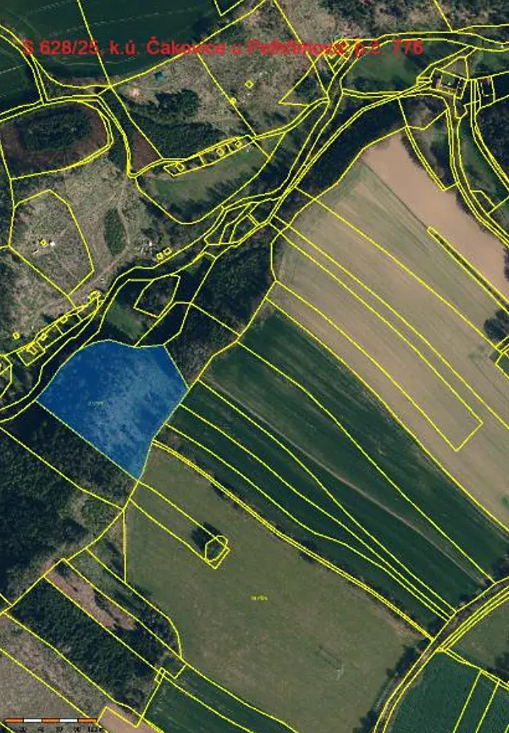 Jedná se o prodej lesního pozemku parc. č. 776 o výměře 14638 m2, situovaného západně od obce Čakovice, hůře přístupného, obklopeného pozemky jiných vlastníků. Část porostu byla vytěžena a plocha zalesněna dubem a smrkem.
