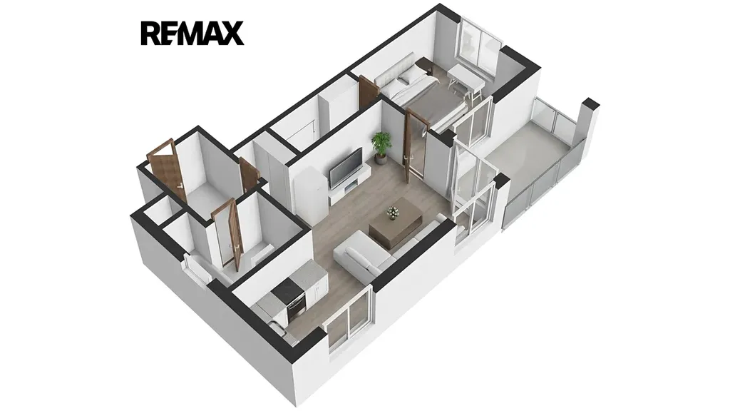 Dispozice je řešena velmi efektivně – obývací pokoj s kuchyňským koutem a přímým vstupem na balkón, samostatná ložnice s přístupem do šatny, prostorná chodba a koupelna s vanou. Velkým benefitem jsou úložné prostory řešené na míru, které dávají bytu nadstandardní funkčnost pro každodenní život. Díky orientaci na více světových stran (jih, východ, západ) je byt přirozeně světlý a vzdušný po celý den.