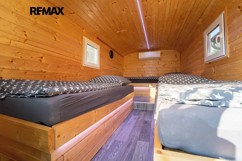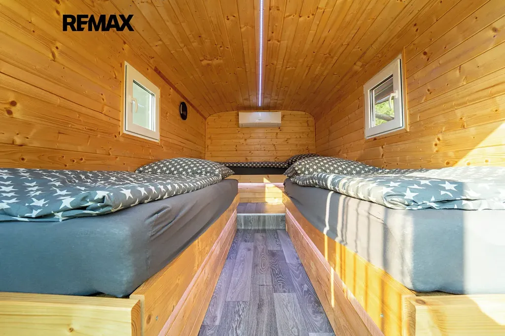 Spaní na akci zajišťují 4 x RETRO vojenské maringotky, každá má 3 x spaní a tak je 12 x lůžek s klimatizací, zásuvkou na nabíjení telefonu, plastovým oknem a led barevným podsvícením – pohodlí, které na první pohled není vidět.