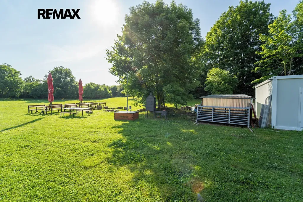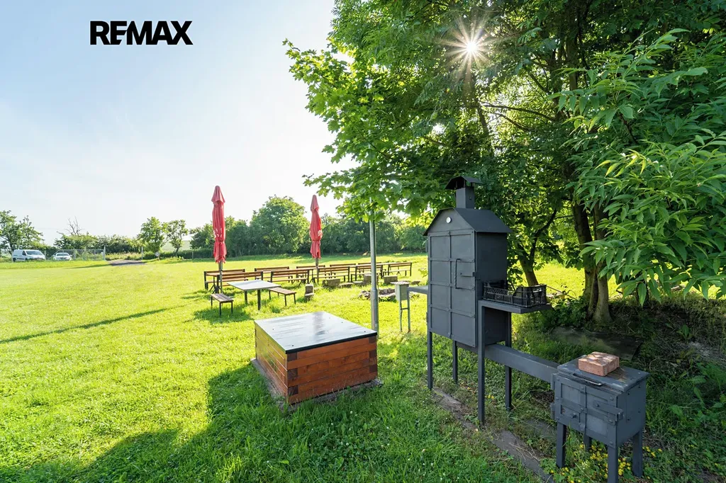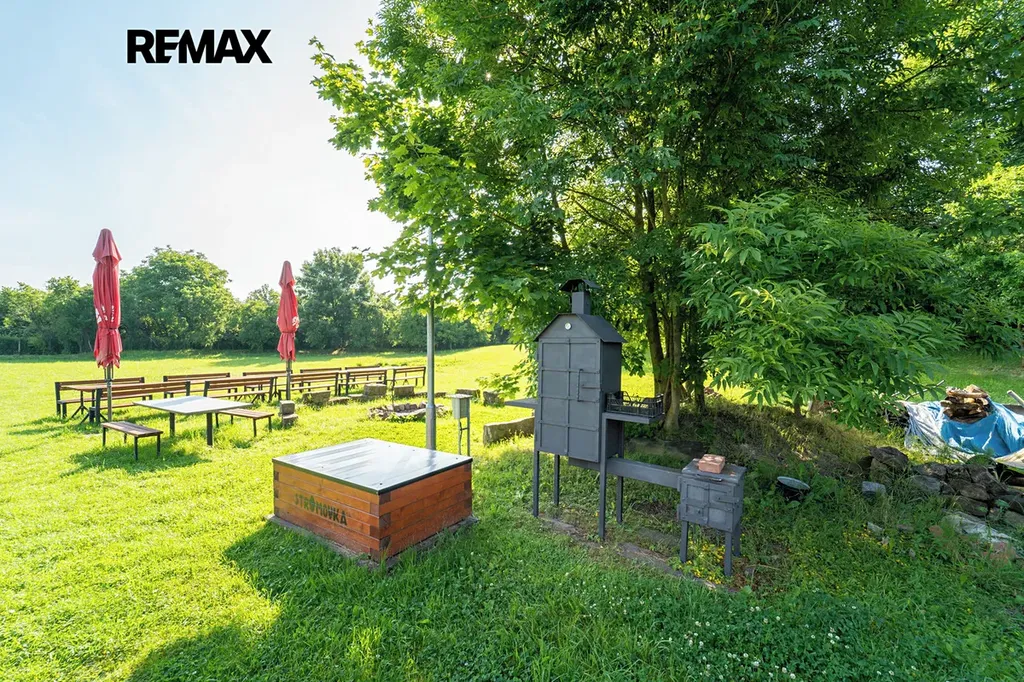 Pozemek o velikosti 10 584 m2 poskytuje novému vlastníkovy další a další využití, jelikož je zde dostatek místa pro vlastní realizaci a možností a různých akcí.