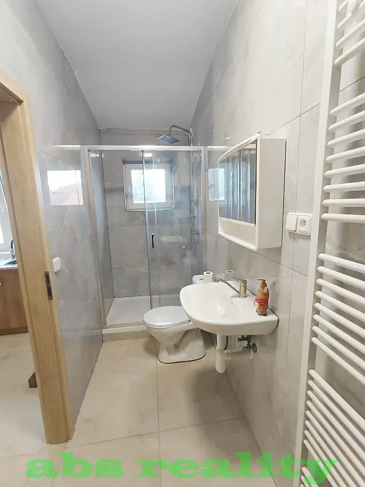 Nabízíme k pronájmu novostavbu podkrovního bytu o velikosti 3+kk v obci Kostomlaty nad Labem. Dispozice: hlavní obývací místnost s kuch.linkou, koupelna se sprchovým koutem a toaletou, chodba, 2x pokoj. Byt se nachází ve 2.nadzemním podlaží a s užitnou plochou 52 m² nabízí dostatek prostoru pro komfortní bydlení. Po doložení PENB bude en.třída změněna, zatím uvádíme G. V obci je veškerá občanská vybavenost. Dopravní obslužnost - vlak Kolín-Praha, bus Nymburk-Lysá n/L-Milovice. K okamžitému nastěhování (bez domácích mazlíčků). Prohlídky po tel.dohodě.