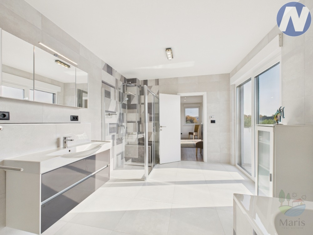Součástí objektu je pět prostorných pokojů, dvě plně vybavené koupelny a samostatné WC pro hosty. Díky světlem prozářeným prostorám, balkonu a svěží zahradě dům nabízí i venkovnímu bydlení. Moderní podlahové vytápění zajišťuje celoroční komfort a pokročilý systém rekuperace vzduchu zajišťuje nepřetržité větrání a energetickou účinnost v celém domě.