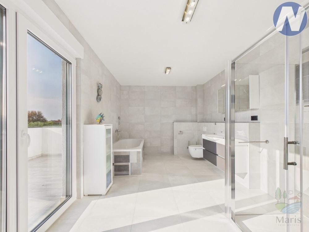 Nabízíme Vám moderní rodinný dům s bazénem, který se nalézá se v klidné a malebné pobřežní vesnici Pomer nedaleko Medulinu, dům nabízí pohodlí a soukromí. Je kvalitně postaven v roce 2011 pouhých 900 metrů od moře a přístavu. Rozkládá se na ploše 291 m² ve dvou dobře organizovaných patrech a stojí na hezkém a udržovaném pozemku o rozloze 824 m². Je promyšleně, komfortně a funkčně navržen. Je ideálním místem pro každodenní bydlení, dovolenou i relaxaci.