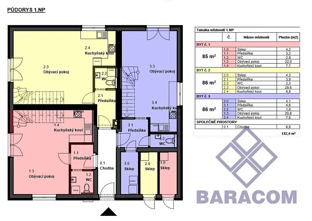 V oblíbené lokalitě v Tachově, v ul. K Lesíku na okraji města, zahajujeme výstavbu rodinných domů o třech bytových jednotkách. Moderní mezonetové byty 3+kk s výhledem na město. Byty se nachází v rodinném domě – energetická třída velmi úsporná - B. Všechny byty o velikosti 90 m2 podlahové plochy, splňují tak komfort i pro náročnou klientelu. Při vstupu do bytů se nachází vstupní prostorná chodba, toaleta s umyvadlem a přípojkou na pračku, dále obývací prostor s kuchyňským koutem. Francouzským oknem v obývacím pokoji vstoupíte na vlastní zahradu o velikosti od 114 m2. Obývací pokoj je propojen betonovým schodištěm s 2NP, kde se nachází ložnice, dětský pokoj, koupelna s vanou a půdní prostor. Vytápění je zajištěno tepelným čerpadlem, díky kterému se sníží náklady na energie až o třetinu oproti jiným zdrojů vytápění. Tepelné čerpadlo pro každou byt. jednotku, je umístěno vždy ve sklepní kóji. V kóji je úložný skladovací prostor pro např. jízdní kola, sekačku - věci, které nepotřebujete mít denně na očích. Parkování pro 1 automobil je zajištěno na pozemku. Bytová jednotka je vybavena venkovním nezámrzným kohoutem na vodu, zásuvkou na elektřinu a kabelem na venkovní osvětlení. V ceně bytu je zahrnuto: podlahové vytápění v 1NP i ve 2NP, interiérové dveře, podlahy, obklady, dlažba a sanitární vybavení – vše dle výběru nového majitele v našich klientských centrech. V ceně není zahrnuto oplocení pozemku a kuchyňská linka. S financováním Vám rádi pomohou naši specialisté.