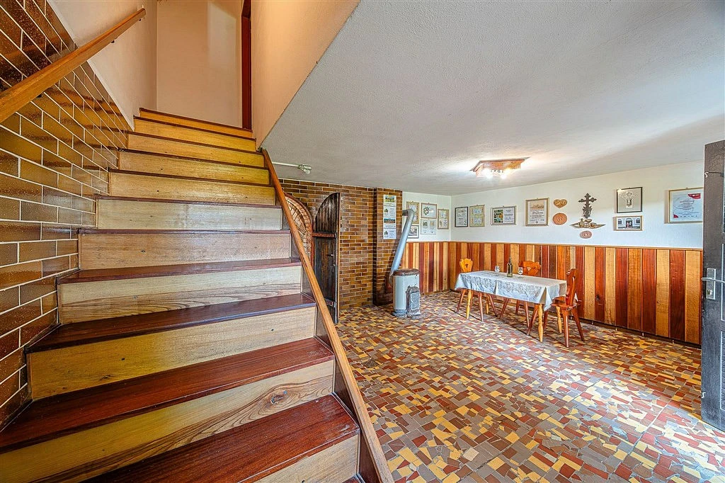 ___Pod budovou je vlastní studna s kvalitní pitnou vodou, která zajišťuje díky malé domácí vodárně vodu ke spotřebě. Dále je zde napojení na veřejnou kanalizaci a elektřinu, ohřev vody v kuchyňce zajišťuje elektrický bojler. Objekt má jedno nadzemní a jedno podzemní podlaží, kde jsou dva kvelbené sklepy.