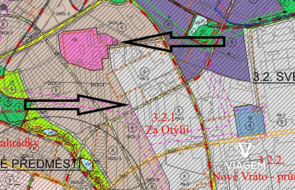 Pozemky se nacházejí v území se smíšeným charakterem využití – převážná část plochy je v současnosti určena pro výrobu, část pak pro bydlení kolektivního charakteru. To z lokality činí zajímavý spekulační potenciál pro budoucí rezidenční nebo komerční rozvoj.