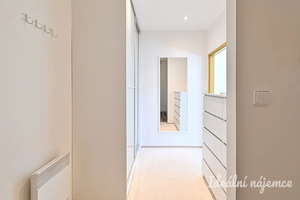 Výhodou je praktická dispozice bytu a dostatek úložných prostor. Byt je vhodný jak pro jednotlivce, tak i pár.