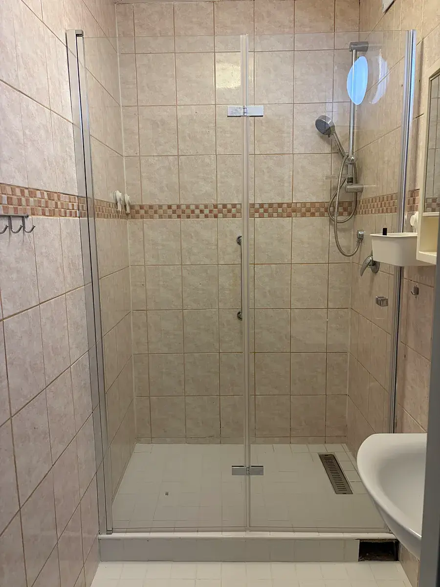Zděné bytové jádro zahrnuje koupelnu se sprchovým koutem a umyvadlem. Toaleta je samostatná. Všechny místnosti mají vstup z centrální předsíně, která poskytuje dostatek úložného prostoru díky dostatku skříní.