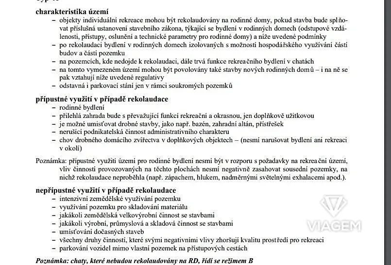 Pozemek je možné využívat k rekreačním účelům jako zahradu. Případně lze pozemek vnímat jako spekulační pro budoucí výstavbu RD viz. platný Územní plán v obrazové dokumentaci inzerátu.
